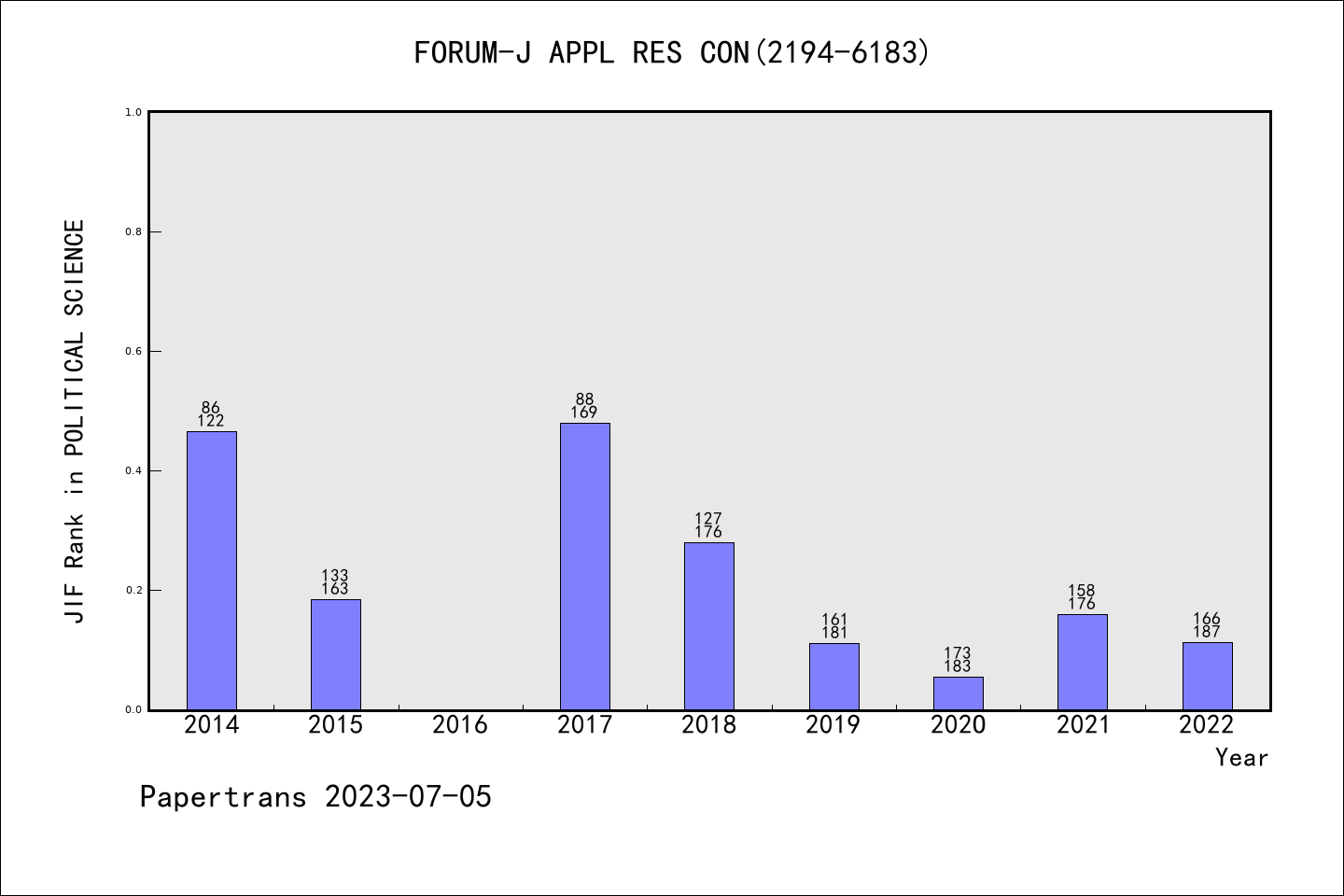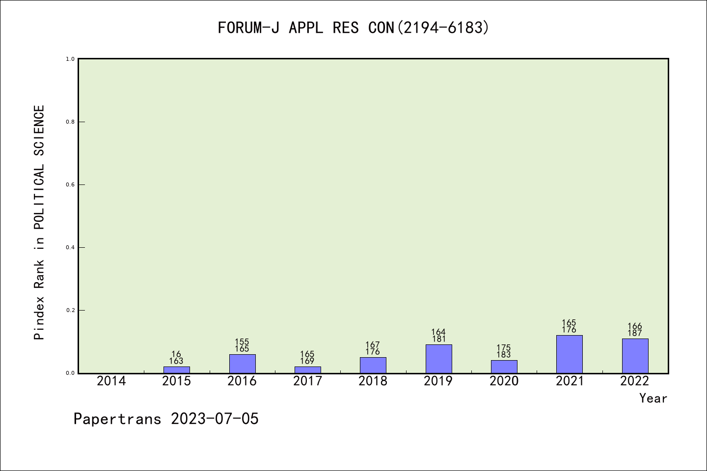 SSCI期刊Forum-A Journal of Applied Research in Contemporary Politics历年派博系数(Pindex)