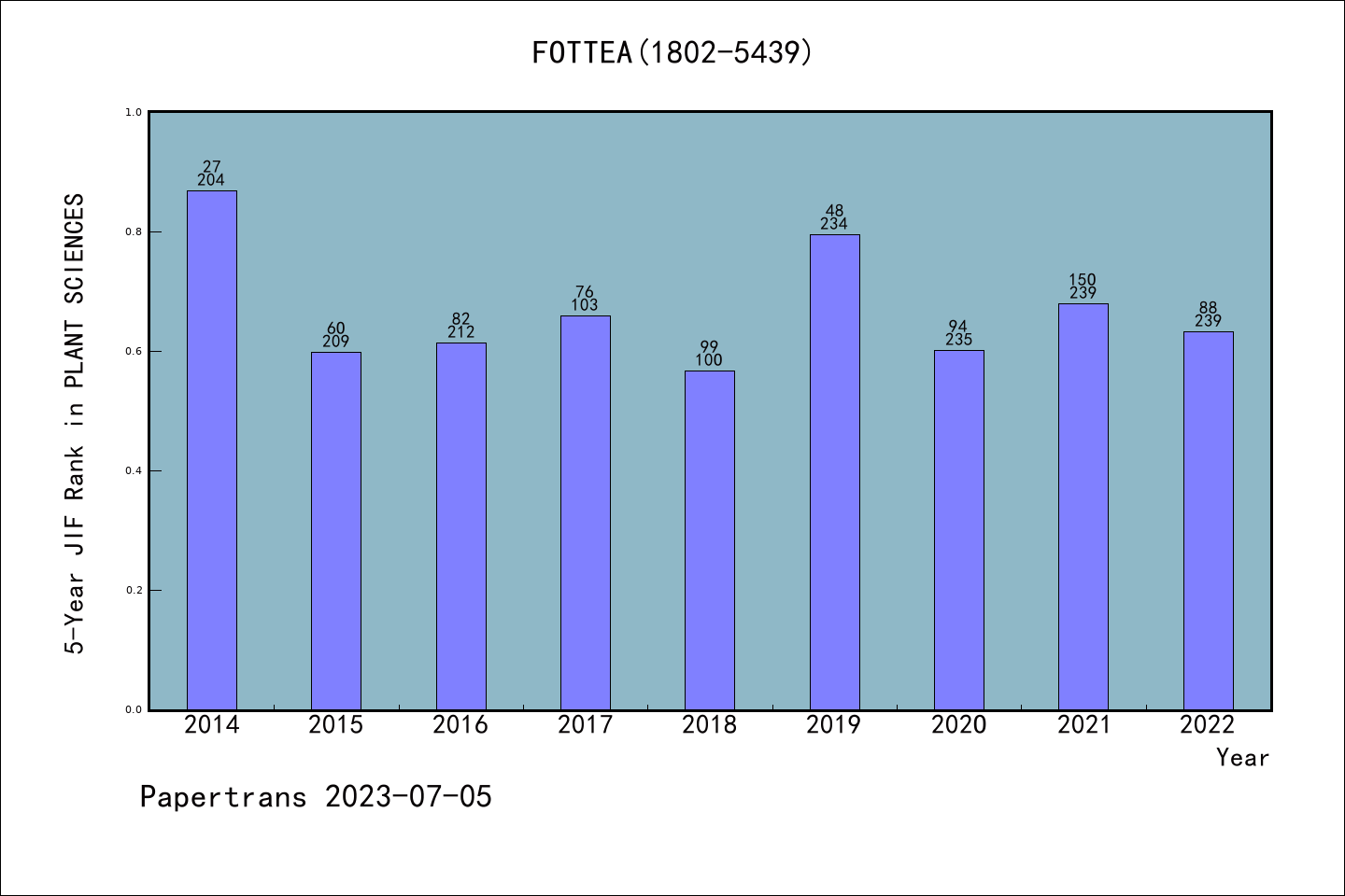 Fottea体裁与题裁多样性排名@SCIE植物科学