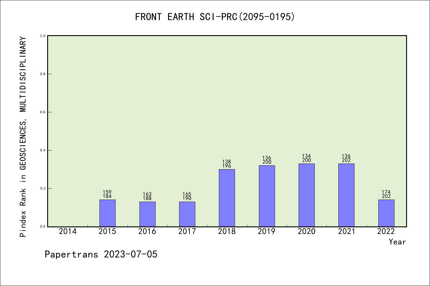 SCIE期刊Frontiers of Earth Science历年派博系数(Pindex)