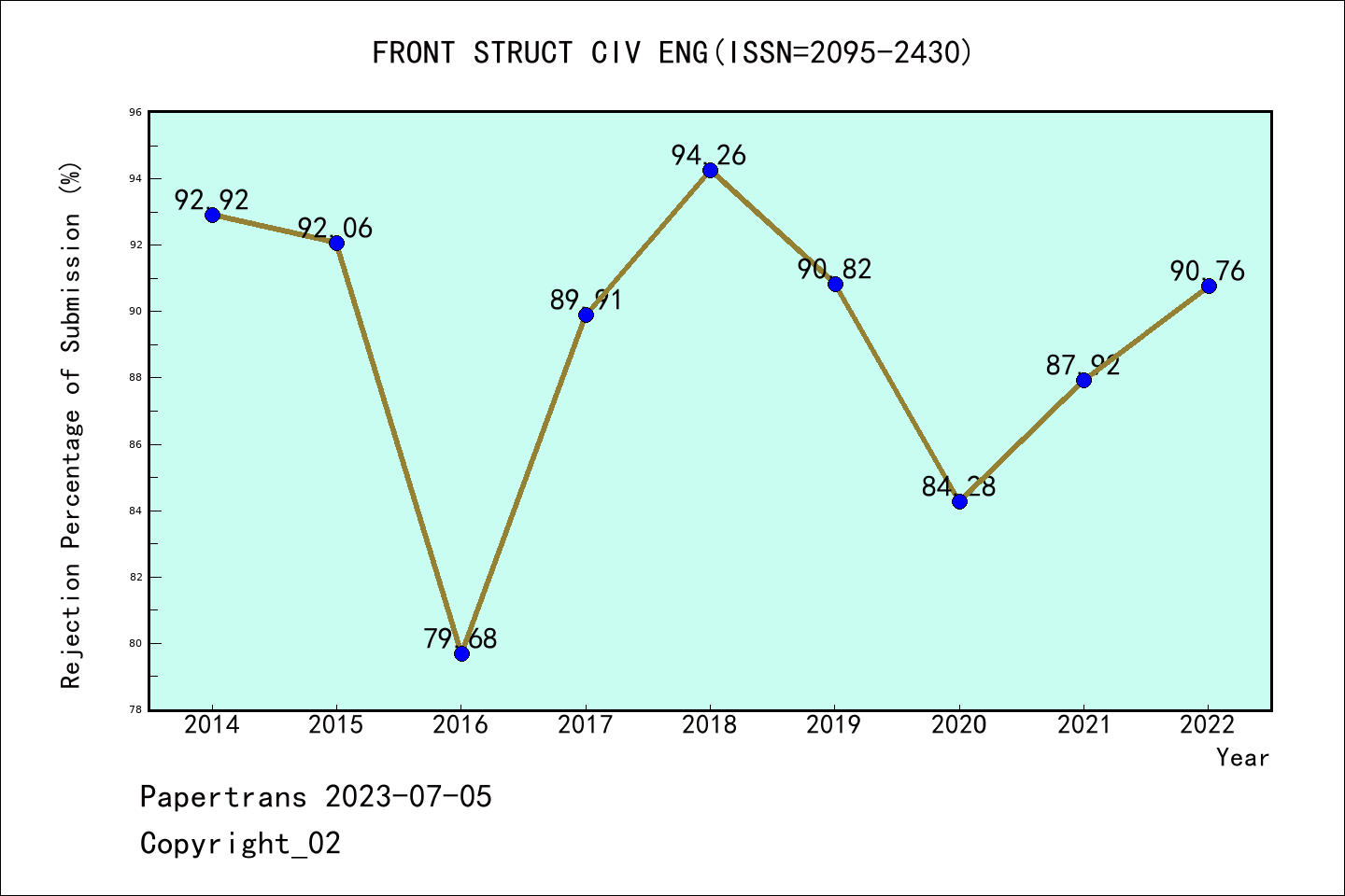 SCIE期刊Frontiers of Structural and Civil Engineering历年拒稿占比