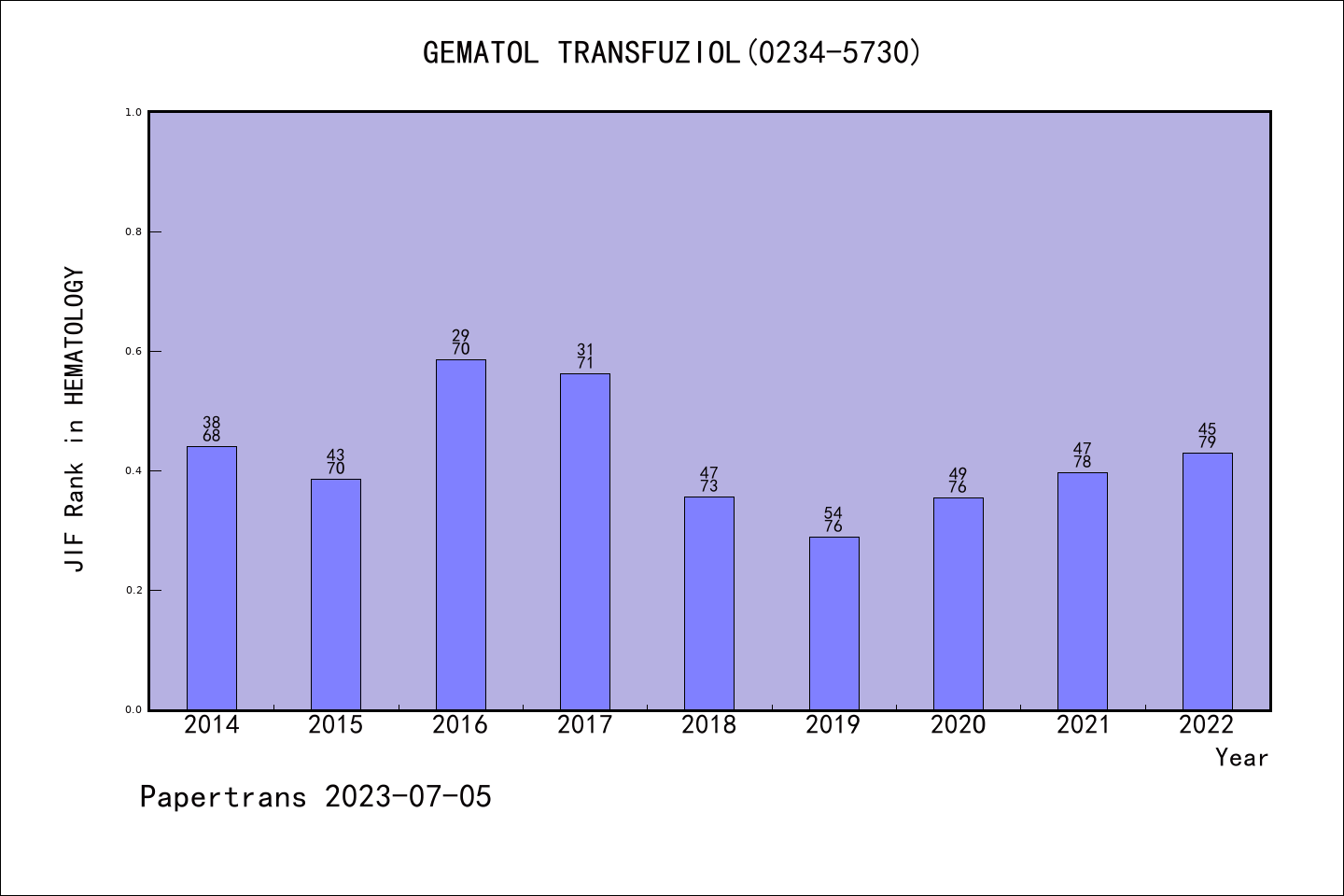 GEMATOL TRANSFUZIOL图表质量排名@SCIE血液学