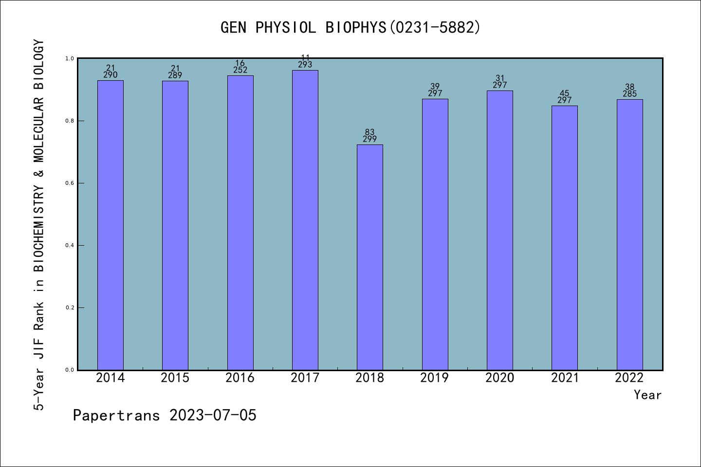 GENERAL PHYSIOLOGY AND BIOPHYSICS派博系数(Pindex)学科排名@SCIE生物化学与分子生物学