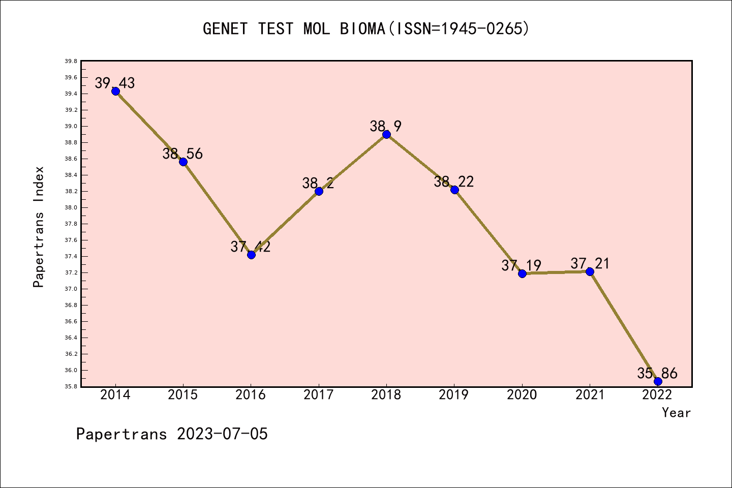 SCIE期刊Genetic Testing and Molecular Biomarkers历年派博系数(Pindex)