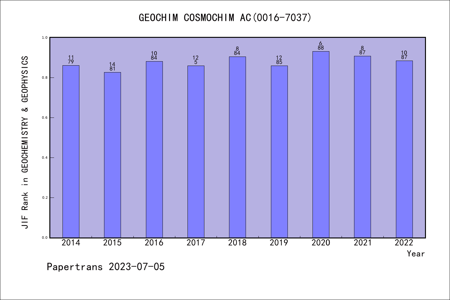 GEOCHIMICA ET COSMOCHIMICA ACTA派博系数(Pindex)学科排名@SCIE地球化学与地球物理