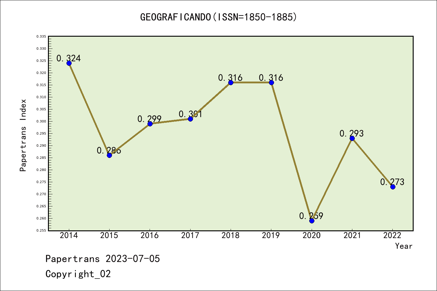 派博 系数 | ESCI期刊Geograficando历年派博系数(Pindex)