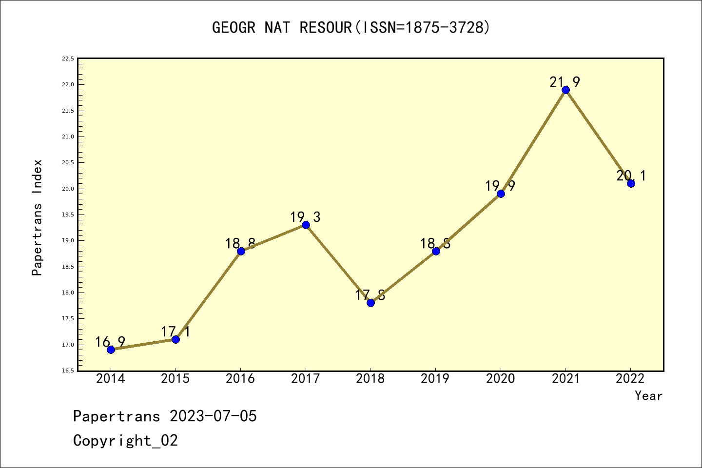 ESCI期刊Geography and Natural Resources历年派博系数(Pindex)