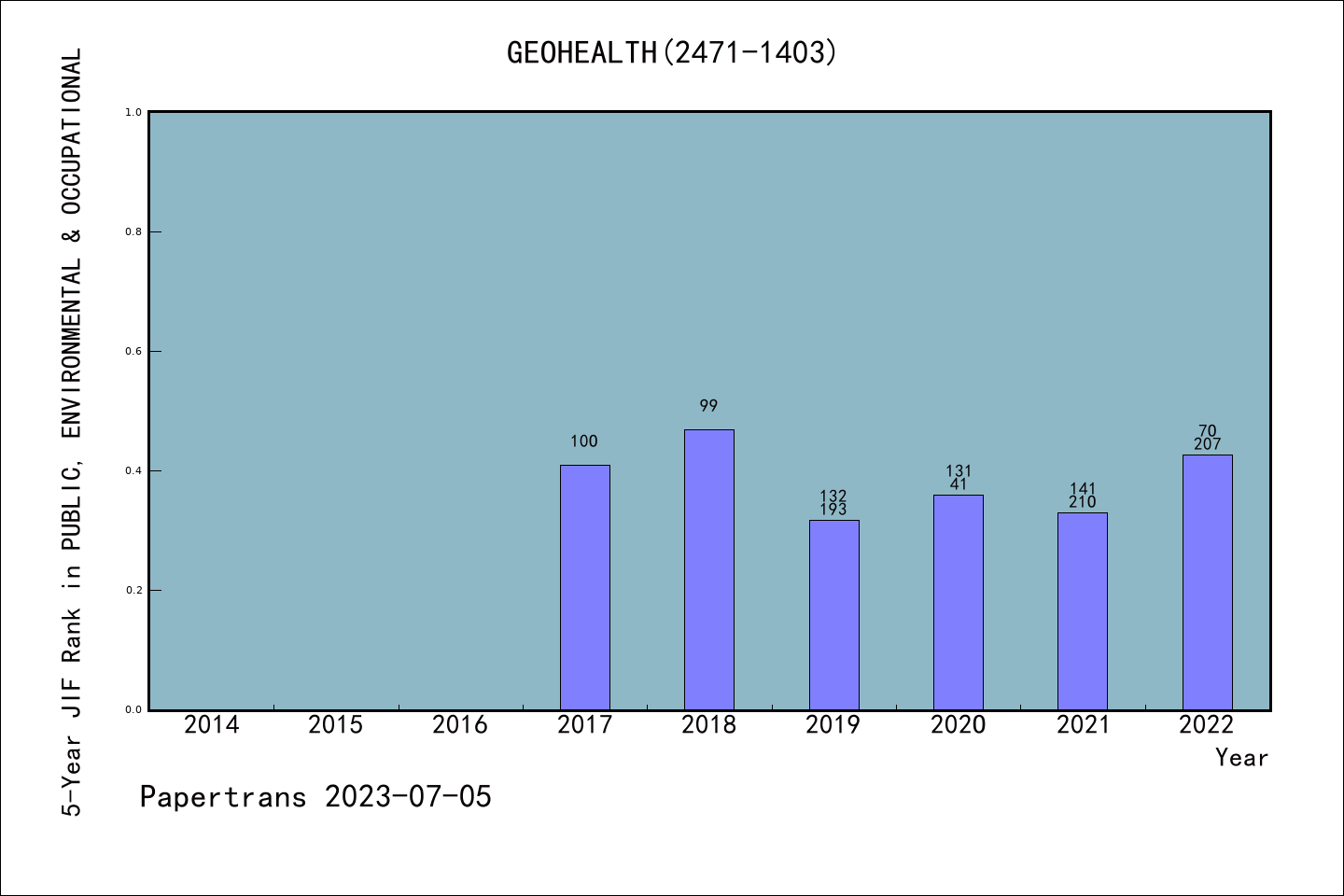 SCIE期刊GeoHealth历年派博系数(Pindex)