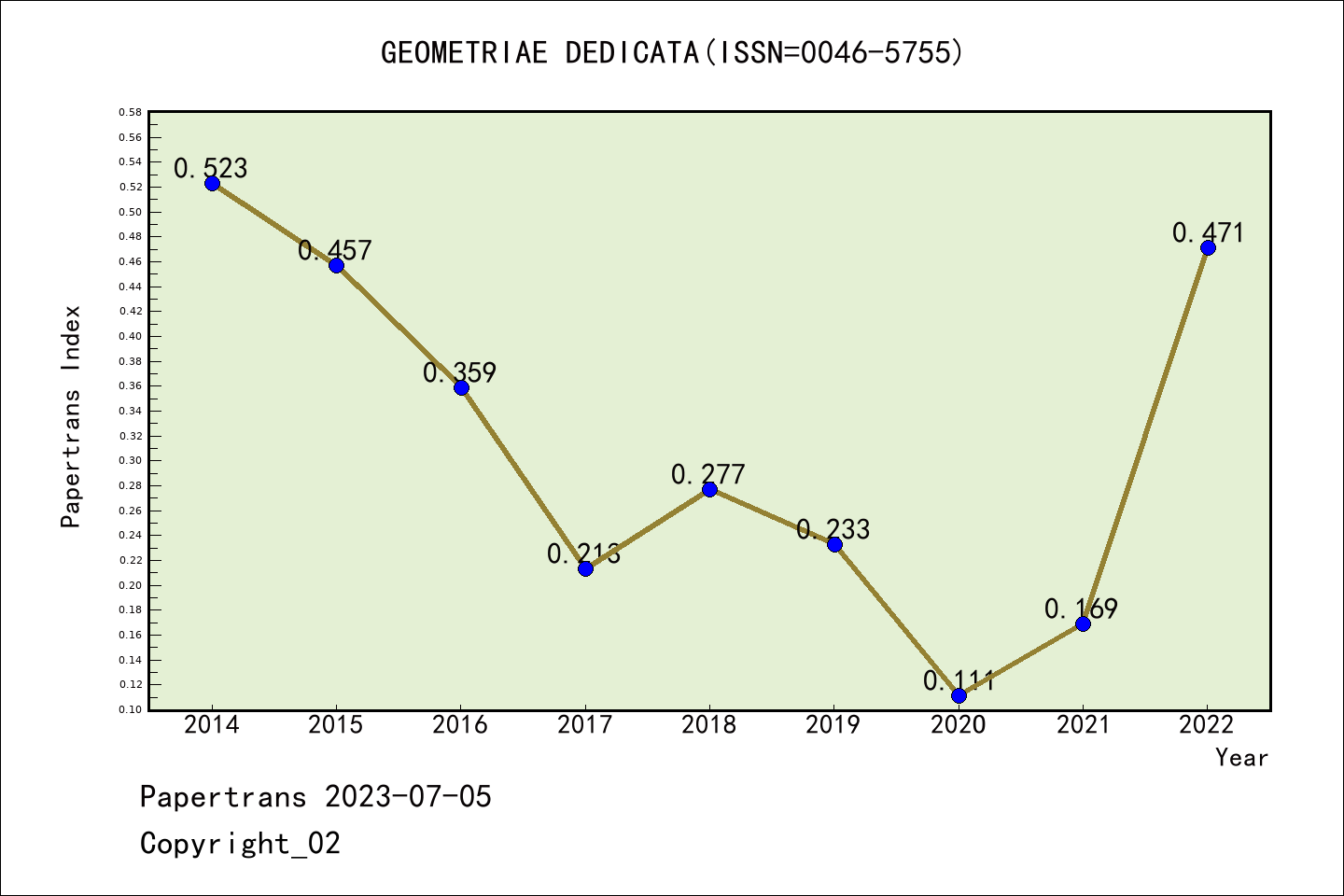 SCIE期刊GEOMETRIAE DEDICATA历年派博系数(Pindex)