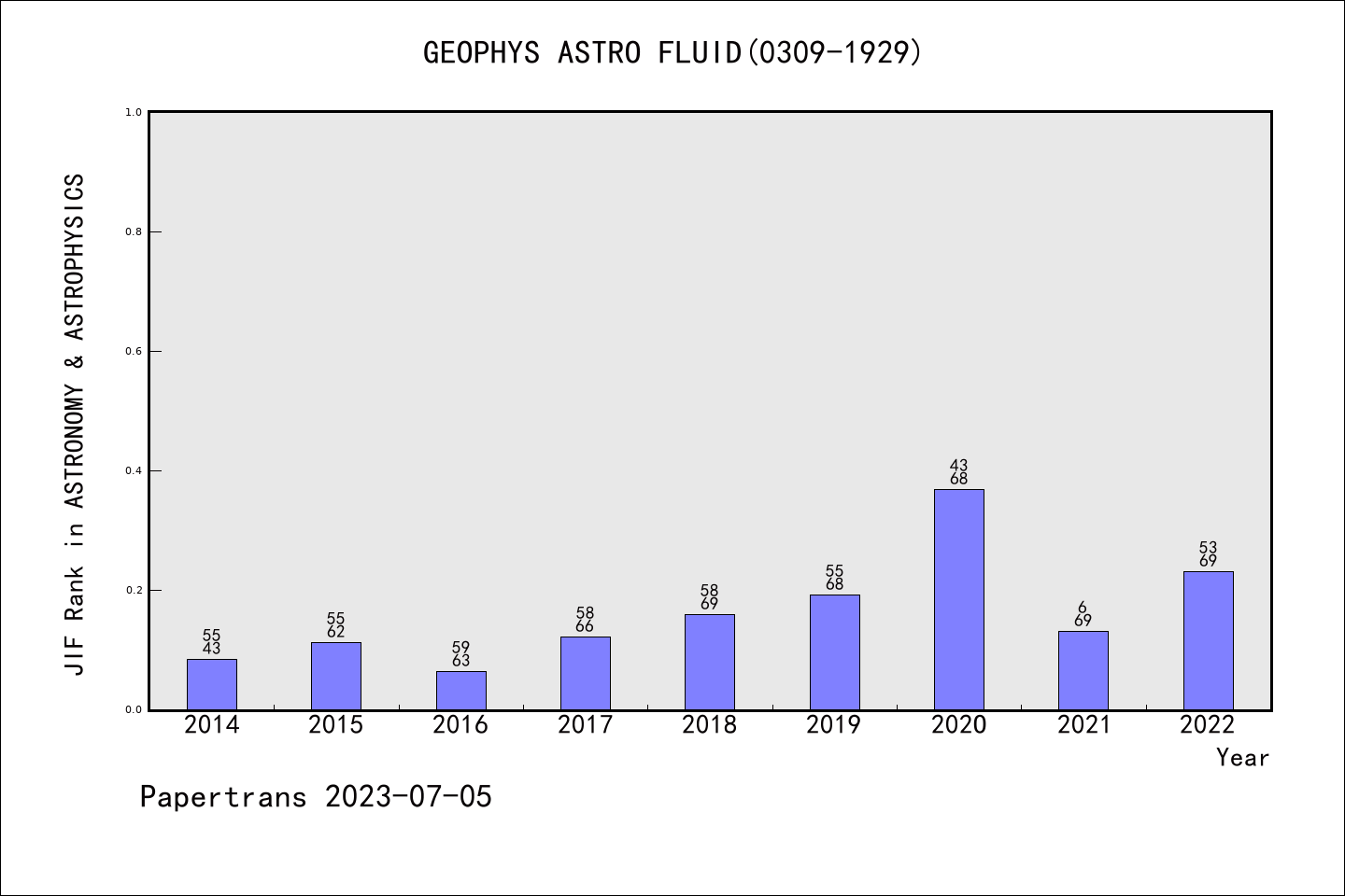 GEOPHYS ASTRO FLUID图表质量排名@SCIE天文学与天体物理学