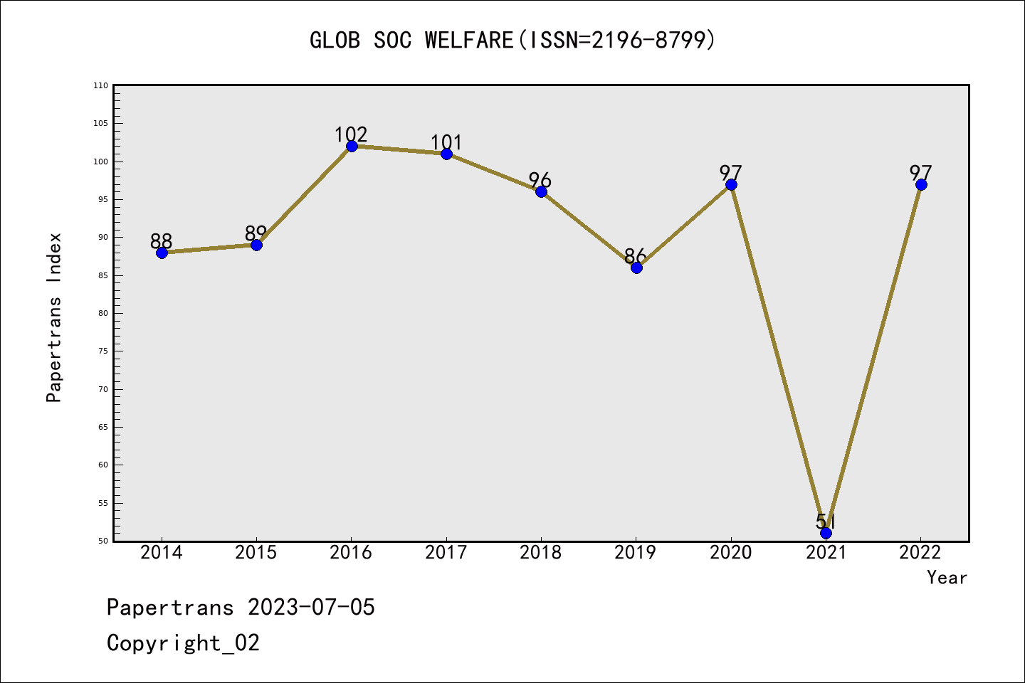ESCI期刊Global Social Welfare历年派博系数(Pindex)