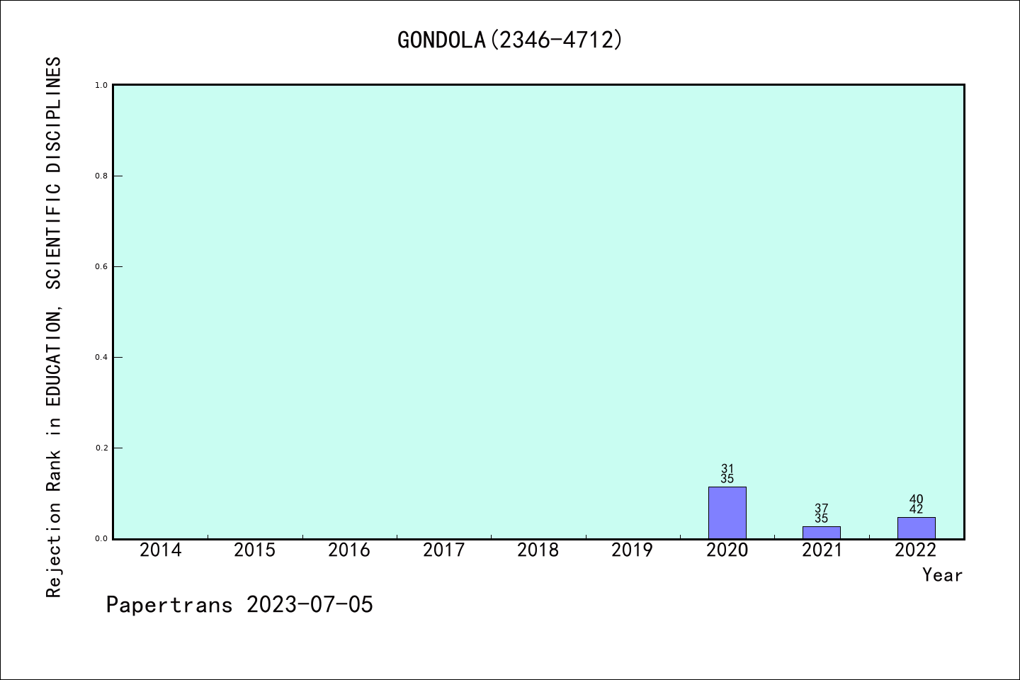 拒稿 占比 | ESCI期刊Gondola-Ensenanza y Aprendizaje de las Ciencias历年拒稿占比