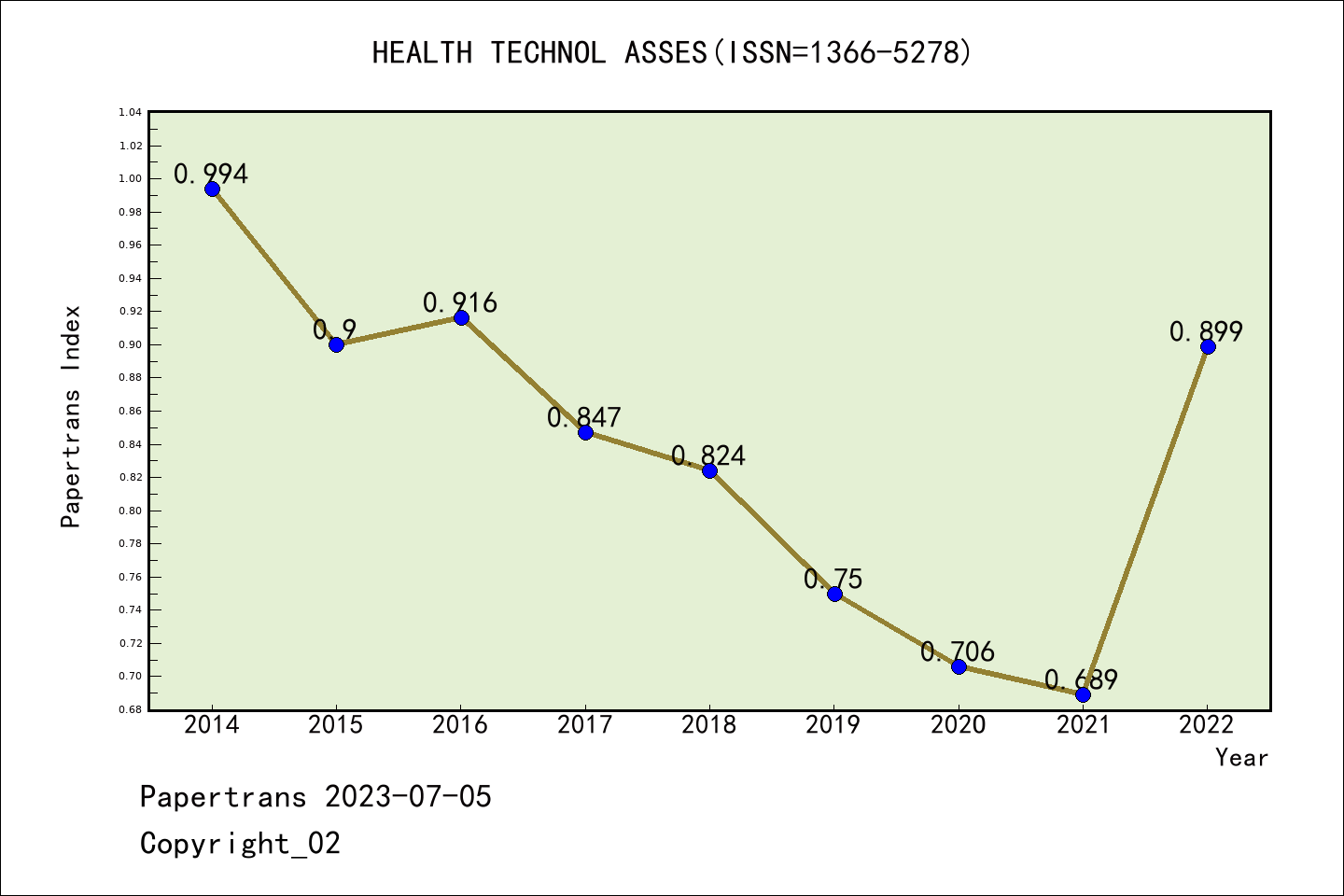 SCIE期刊HEALTH TECHNOLOGY ASSESSMENT历年派博系数(Pindex)