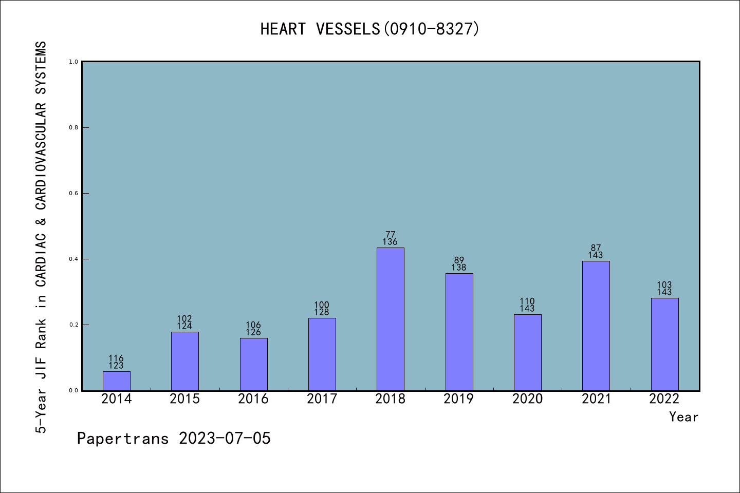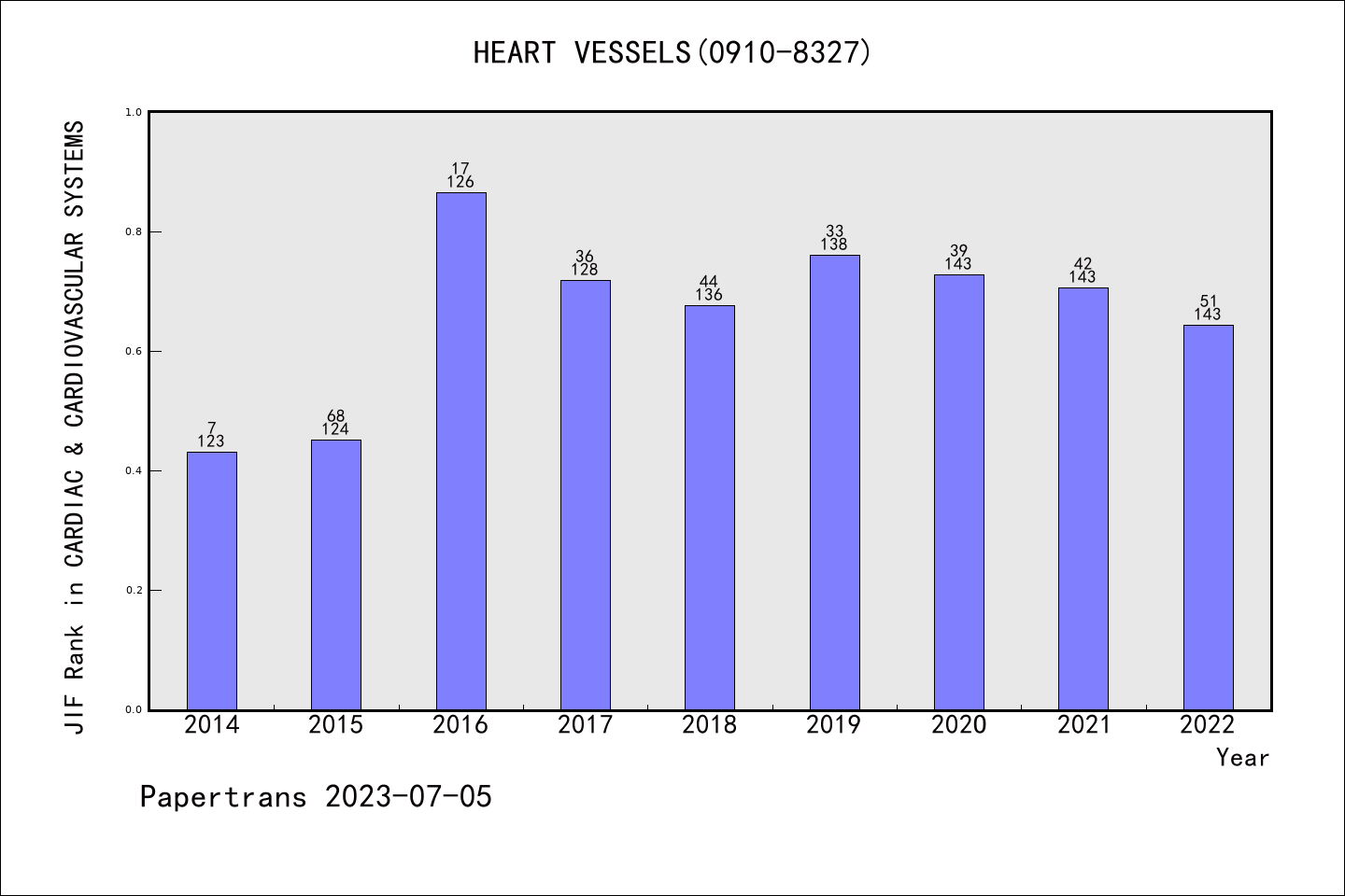 HEART AND VESSELS派博系数(Pindex)学科排名@SCIE心脏和心血管系统