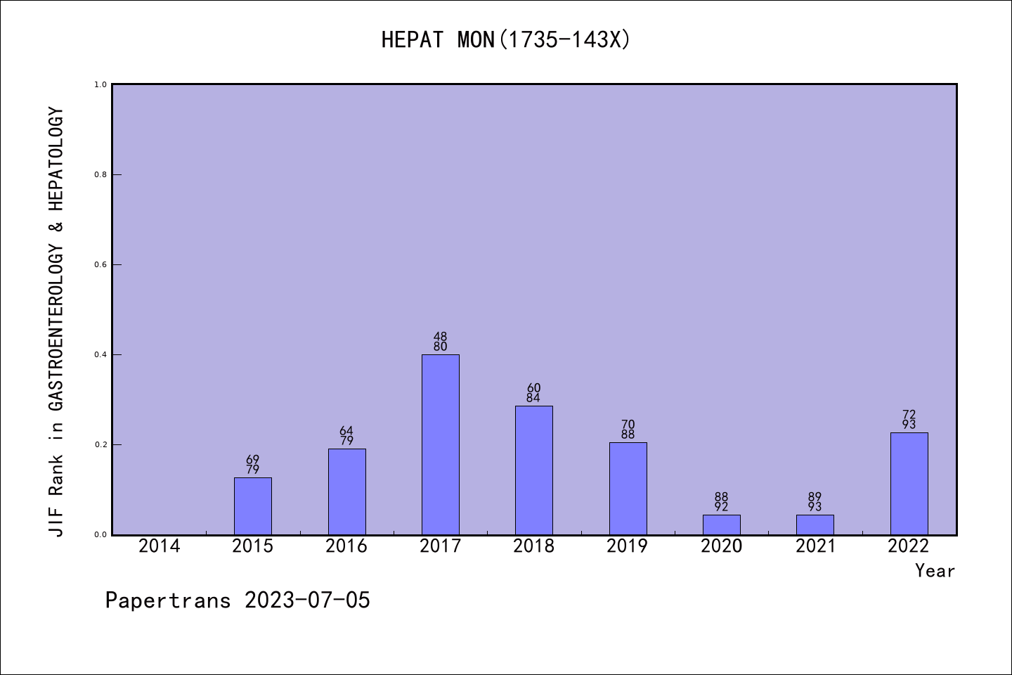 HEPAT MON图表质量排名@SCIE胃肠病学与肝病学