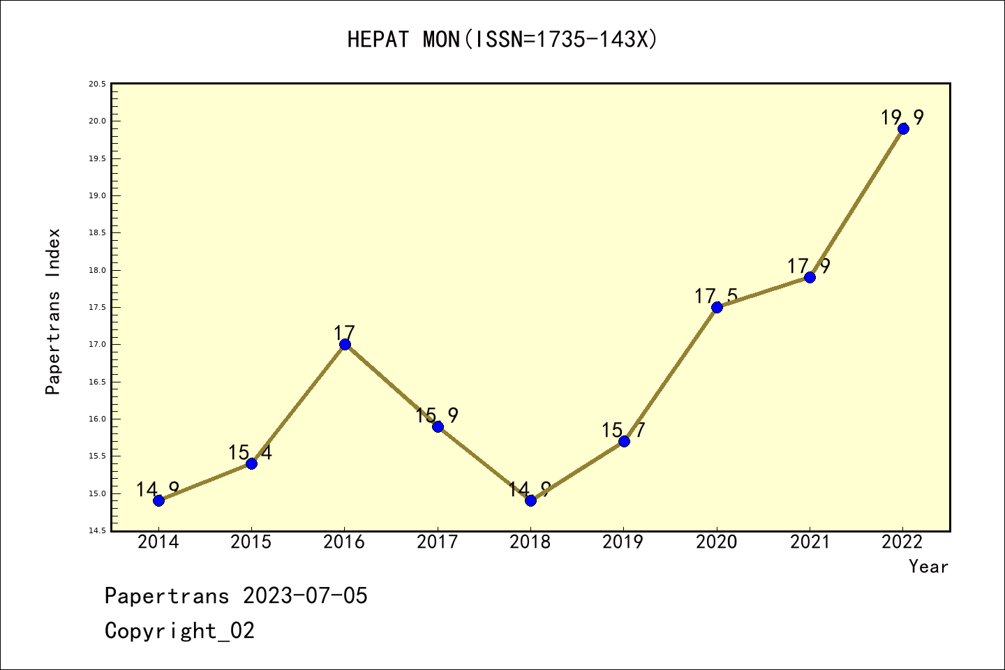 SCIE期刊Hepatitis Monthly历年派博系数(Pindex)