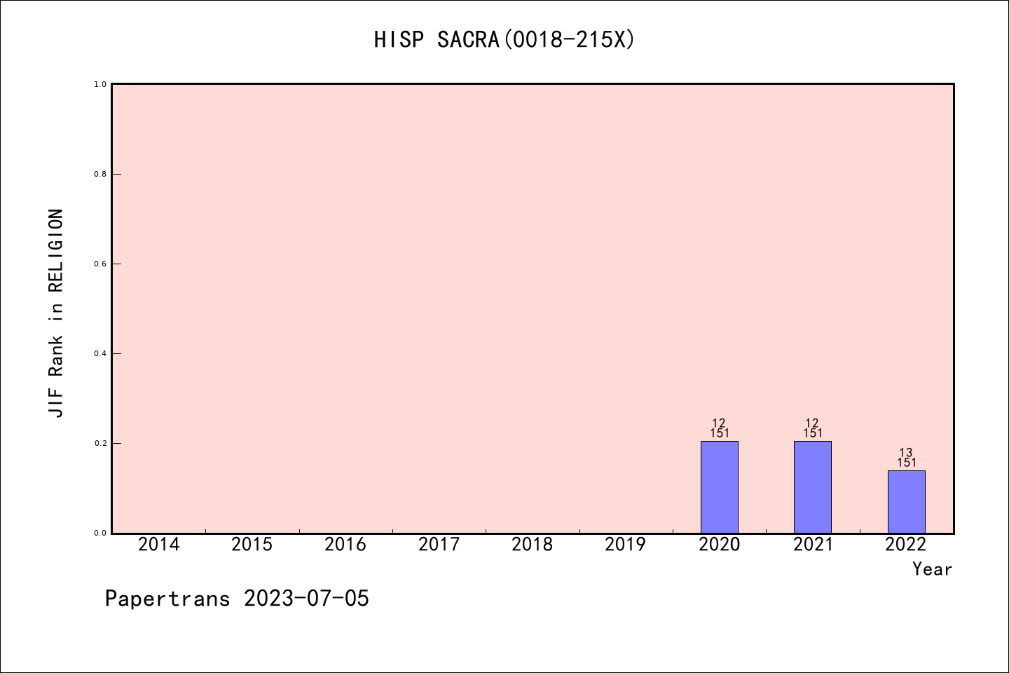 Hispania Sacra拒稿率学科排名@AHCI宗教