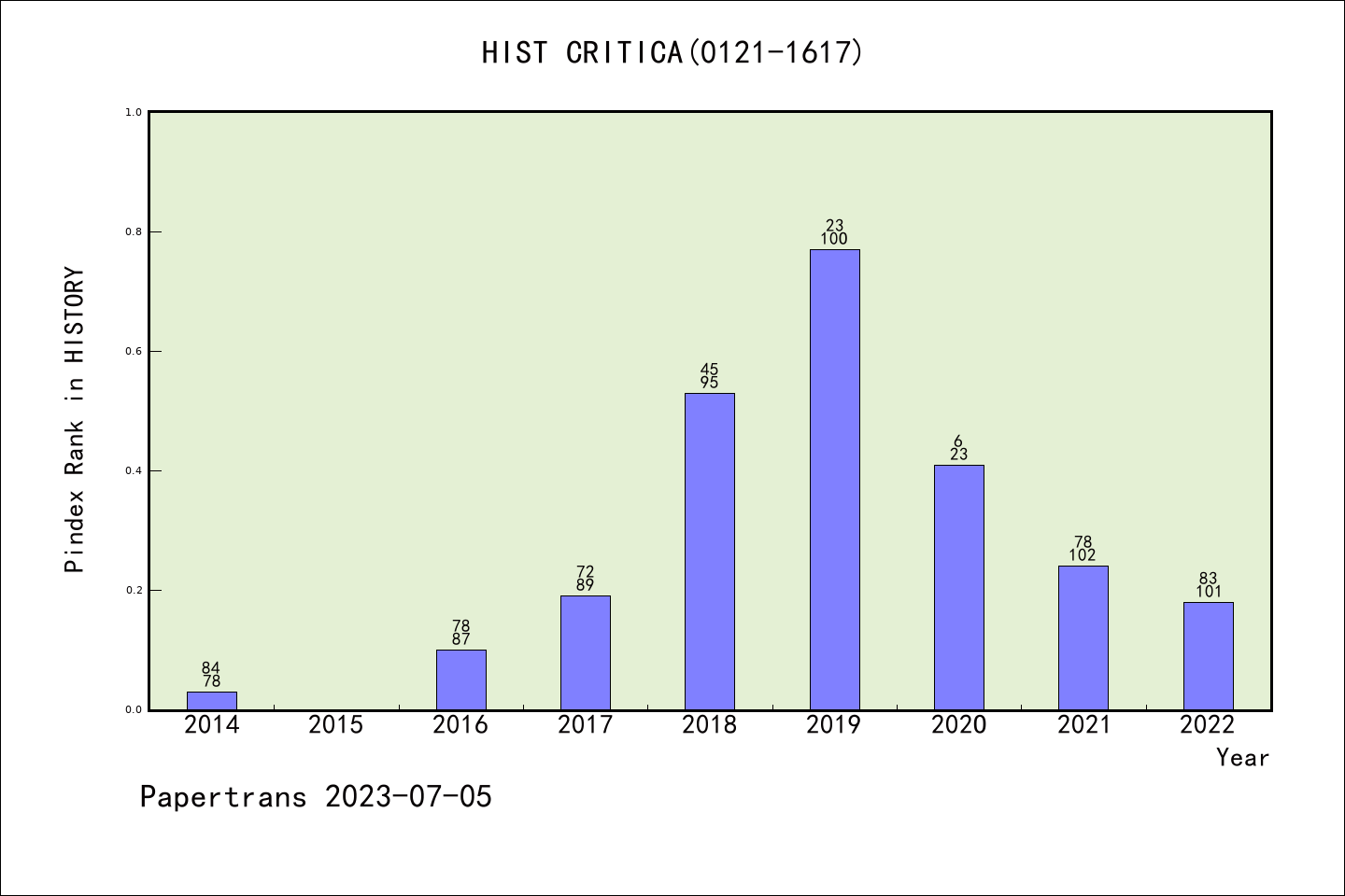 Historia Critica派博系数(Pindex)学科排名@SSCI历史