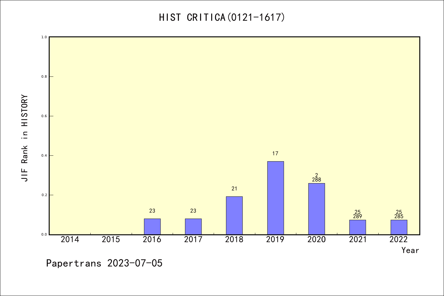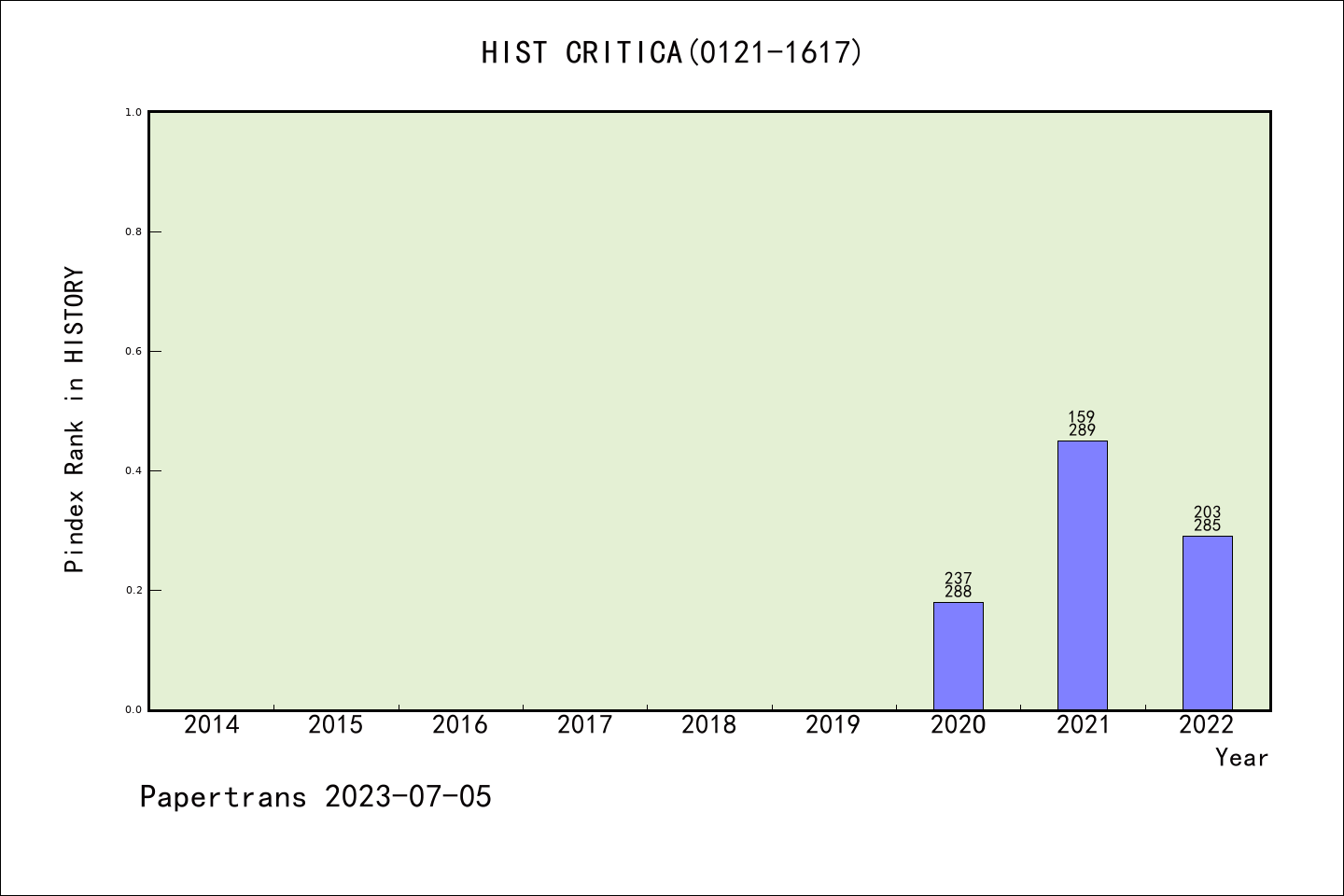 Historia Critica派博系数(Pindex)学科排名@AHCI历史