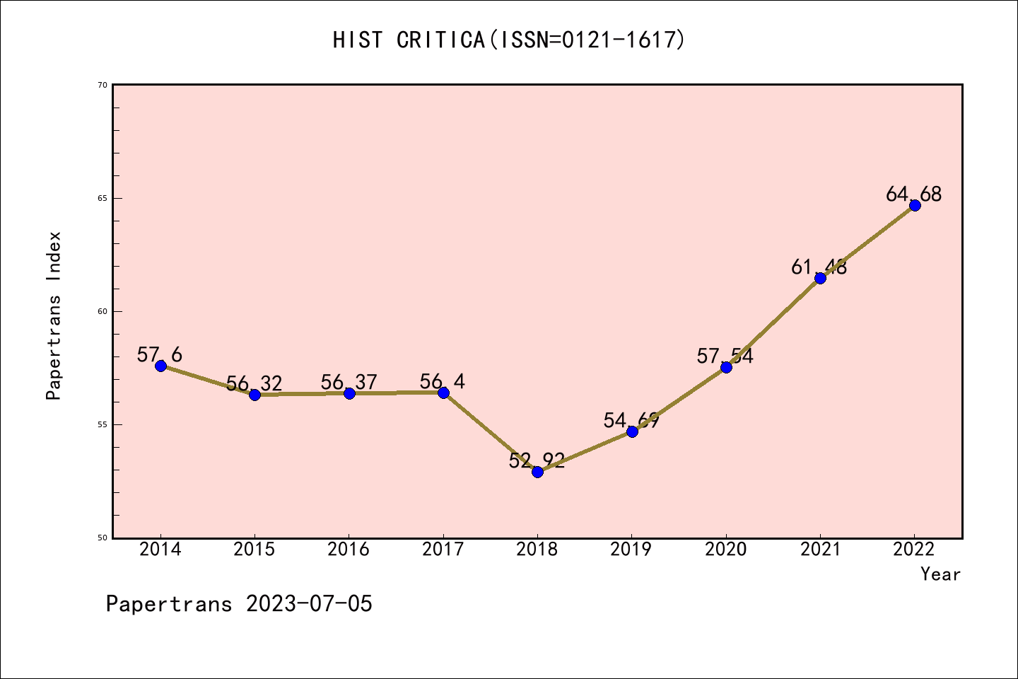 AHCI期刊Historia Critica历年派博系数(Pindex)