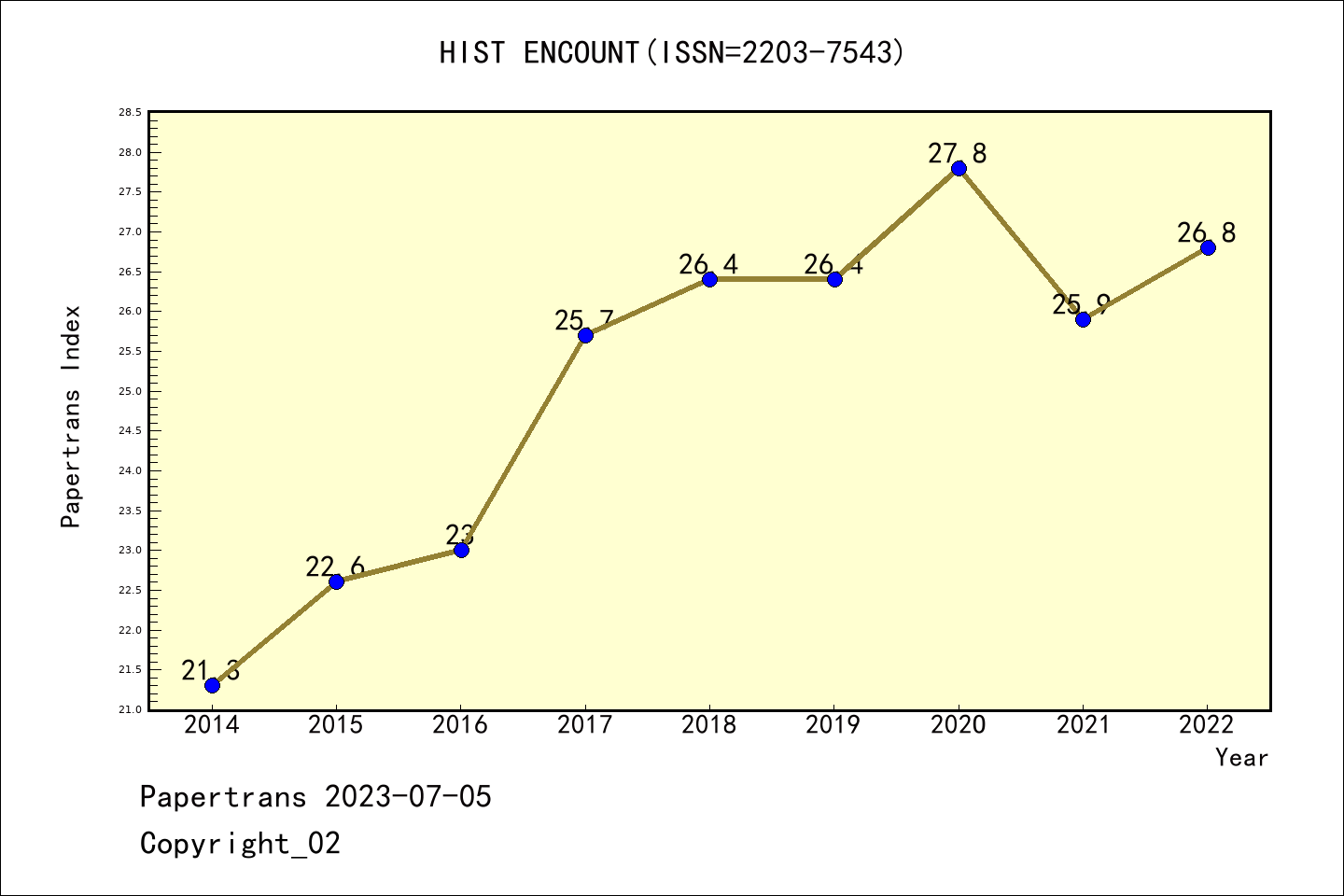 ESCI期刊Historical Encounters-A Journal of Historical Consciousness Historical Cultures and History Education历年派博系数(Pindex)