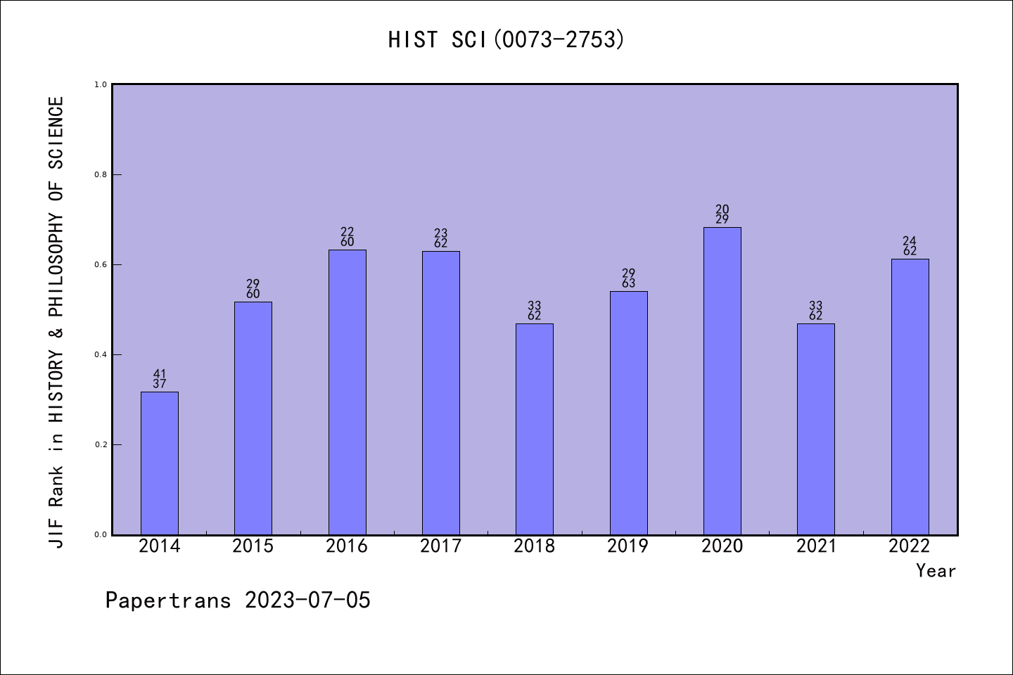 HISTORY OF SCIENCE派博系数(Pindex)学科排名@SCIE历史与科学哲学