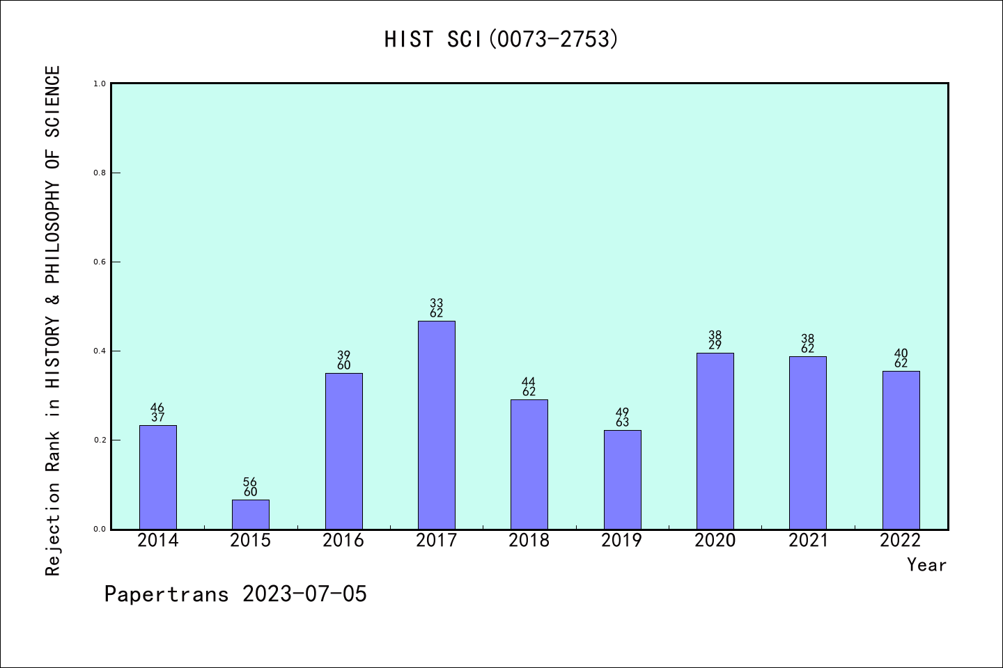 SCIE期刊HISTORY OF SCIENCE历年拒稿占比