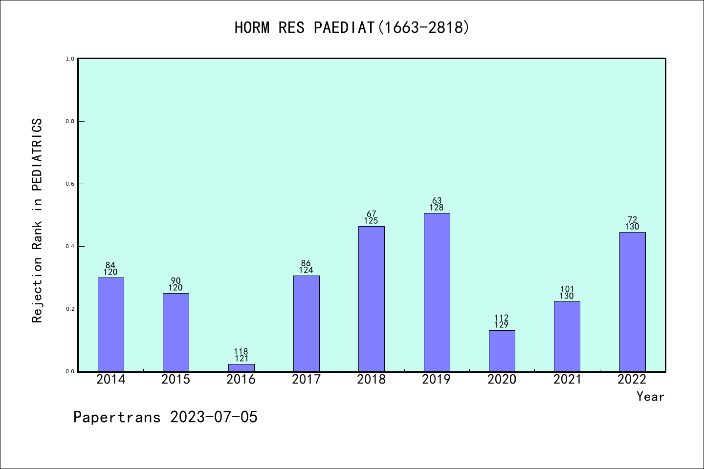 Hormone Research in Paediatrics派博系数(Pindex)学科排名@SCIE儿科