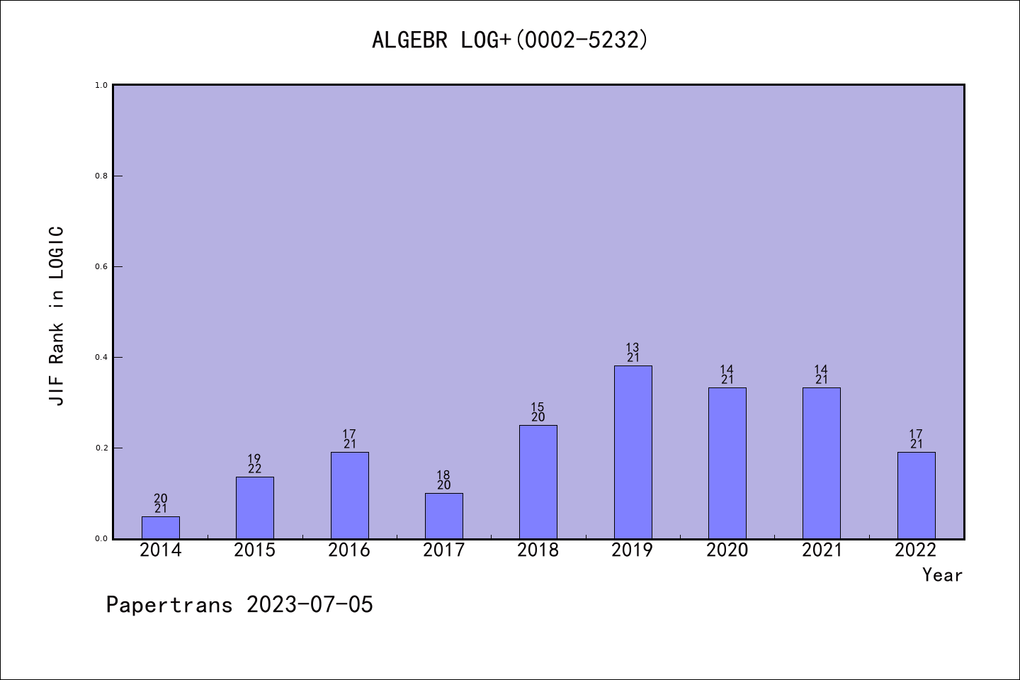 Algebra and Logic派博系数(Pindex)学科排名@SCIE逻辑