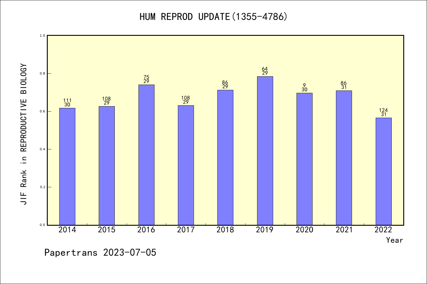 HUMAN REPRODUCTION UPDATE拒稿率学科排名@SCIE生殖生物学