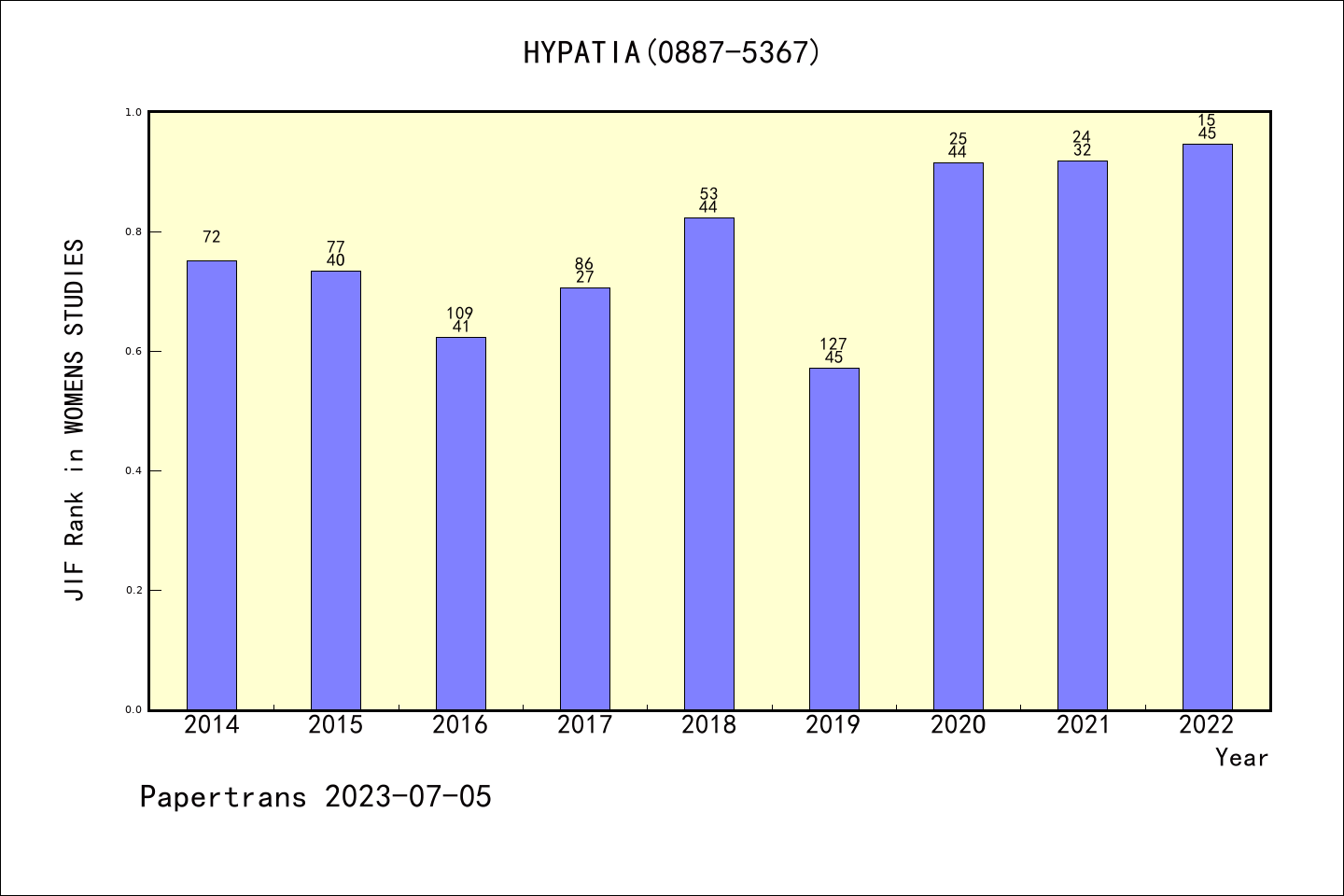 SSCI期刊Hypatia-A Journal of Feminist Philosophy历年派博系数(Pindex)