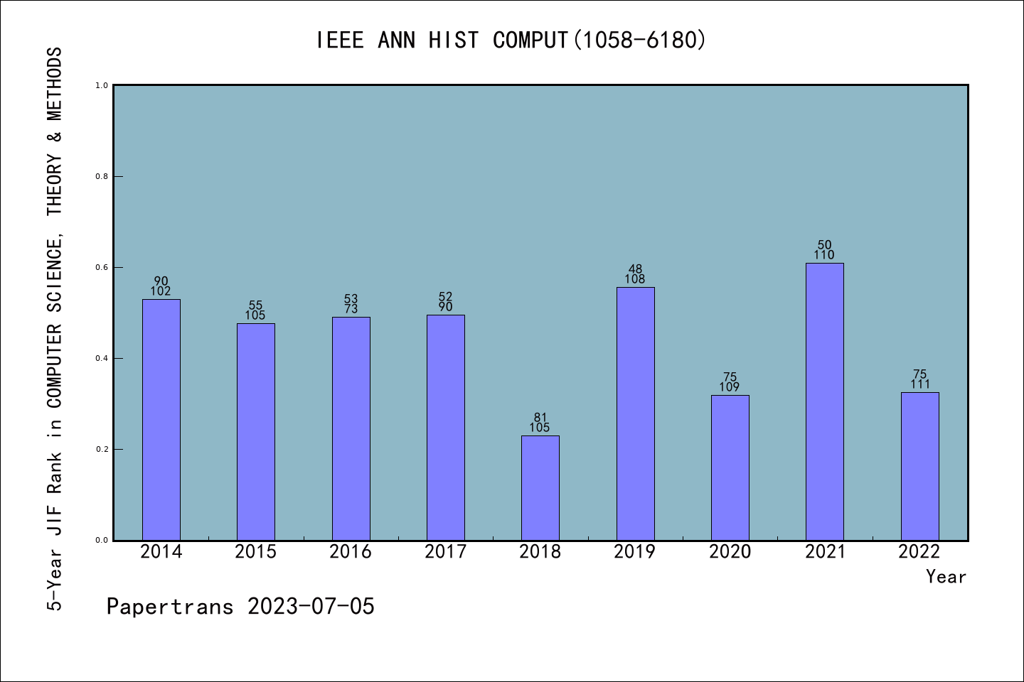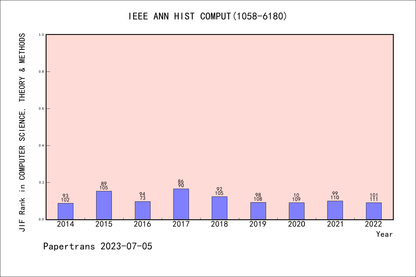 IEEE ANNALS OF THE HISTORY OF COMPUTING拒稿率学科排名@SCIE计算机理论与方法