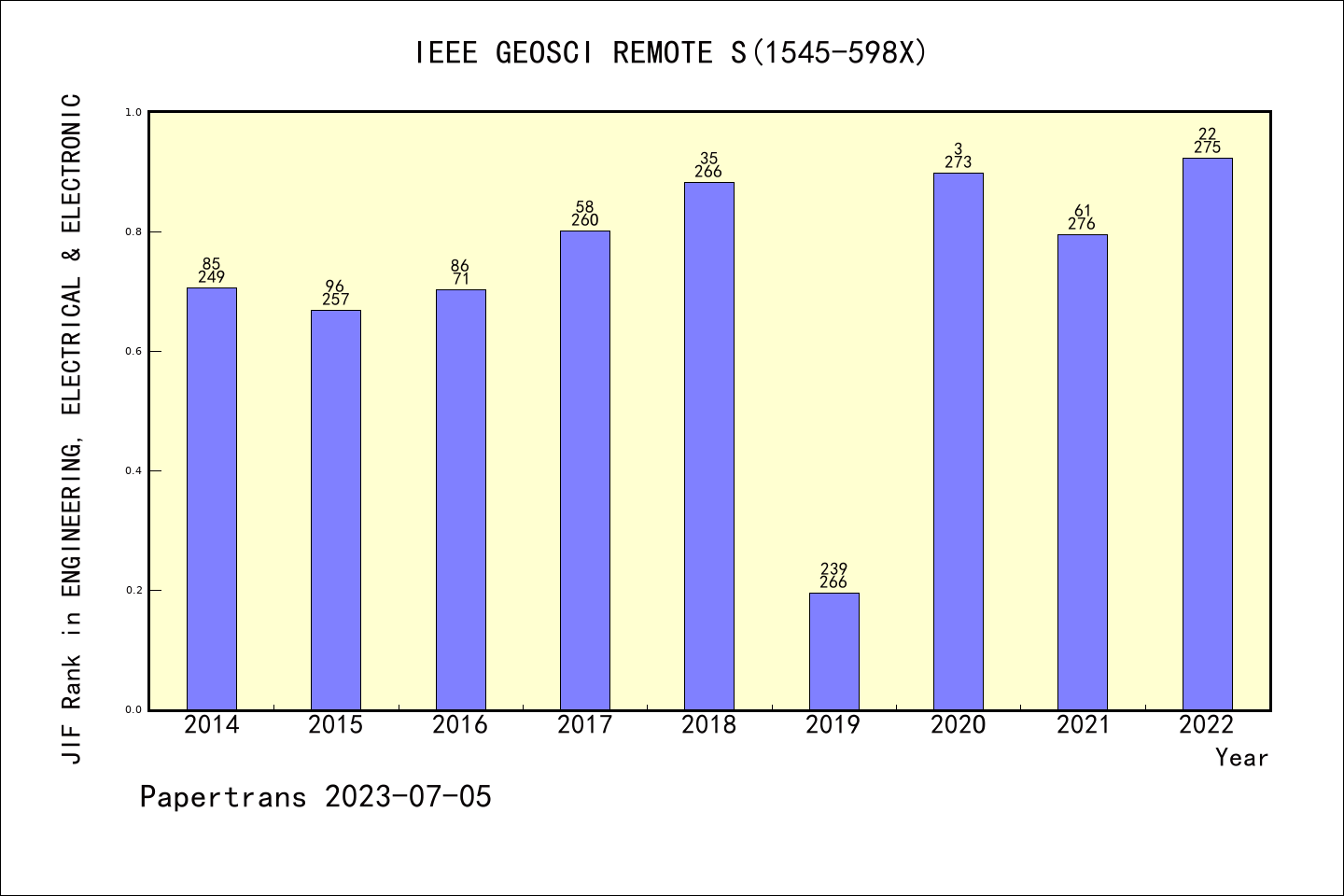 SCIE期刊IEEE Geoscience and Remote Sensing Letters历年派博系数(Pindex)