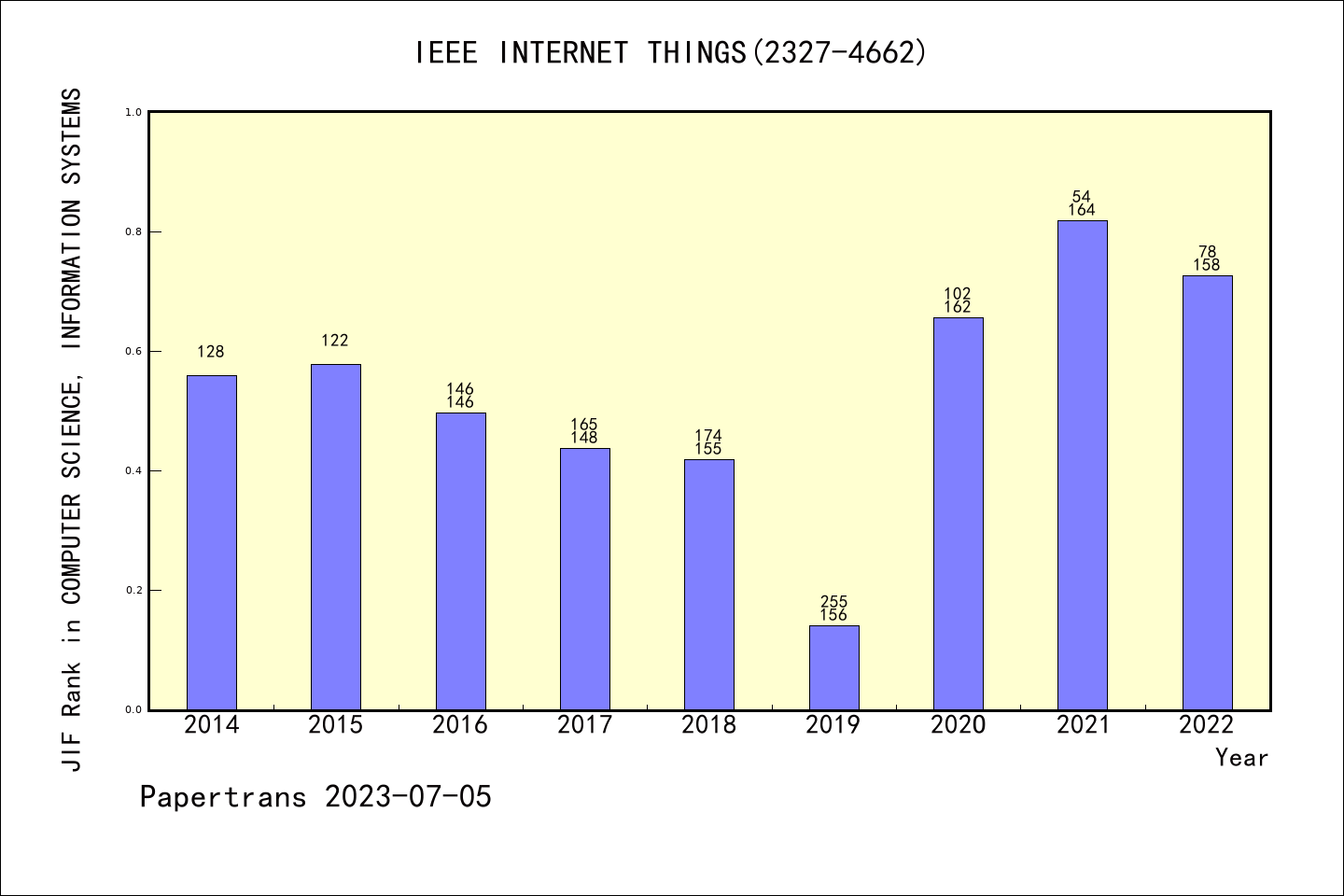 SCIE期刊IEEE Internet of Things Journal历年派博系数(Pindex)