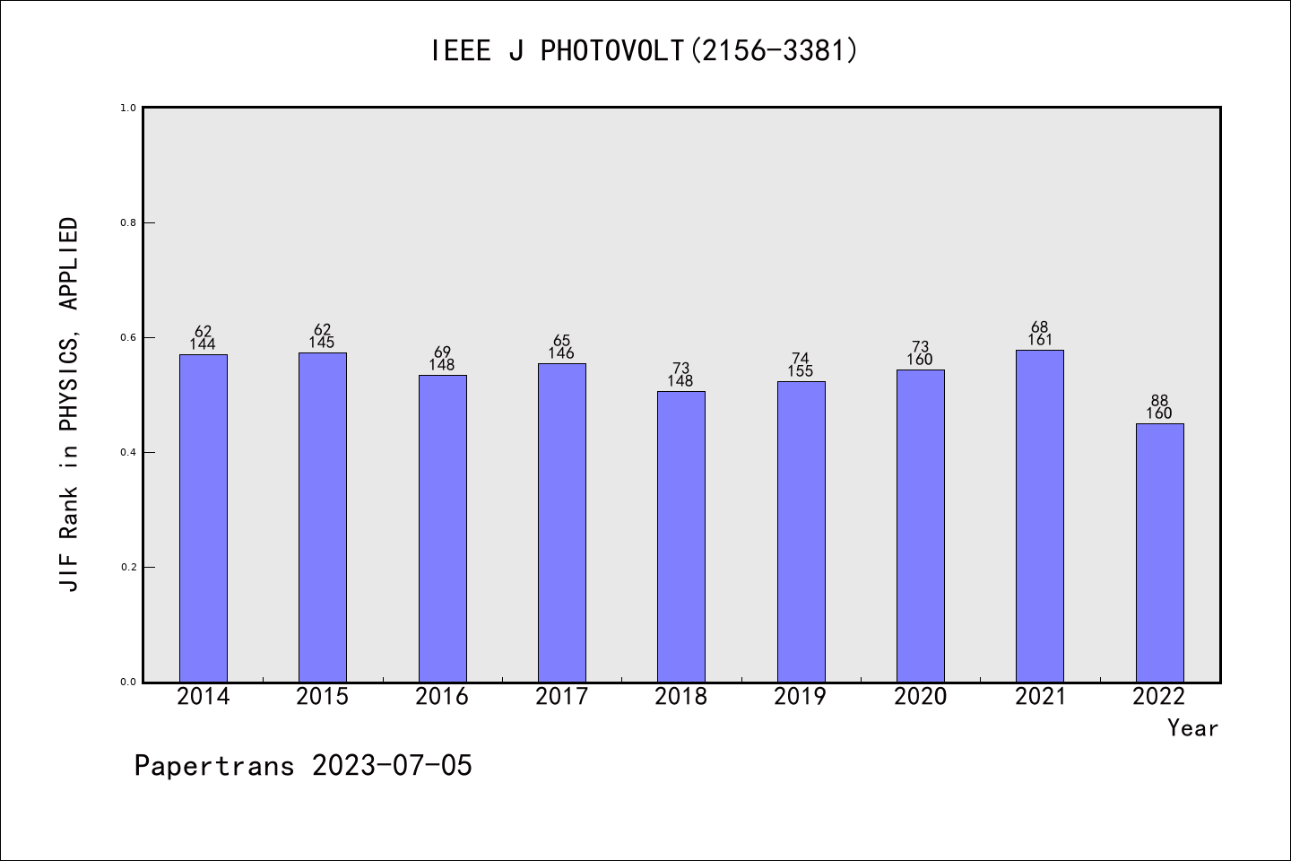 IEEE Journal of Photovoltaics派博系数(Pindex)学科排名@SCIE应用物理
