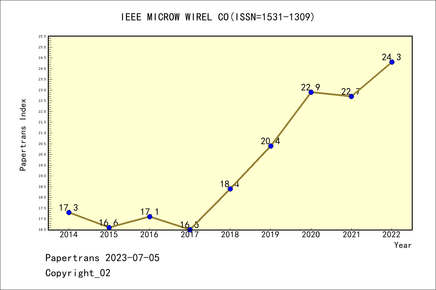 SCIE期刊IEEE MICROWAVE AND WIRELESS COMPONENTS LETTERS历年派博系数(Pindex)
