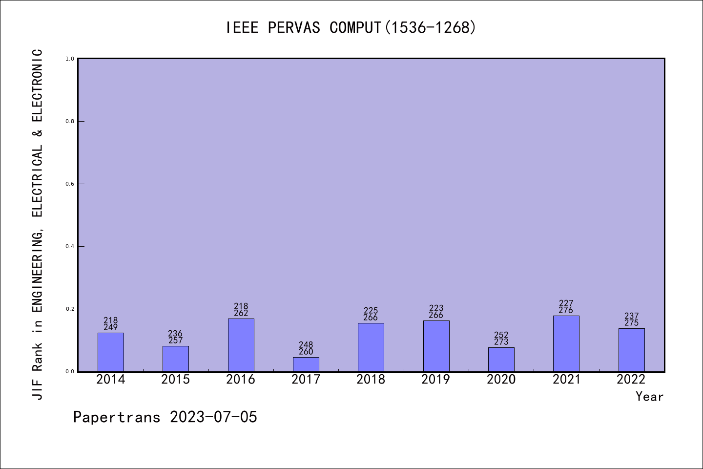 SCIE期刊IEEE PERVASIVE COMPUTING历年派博系数(Pindex)