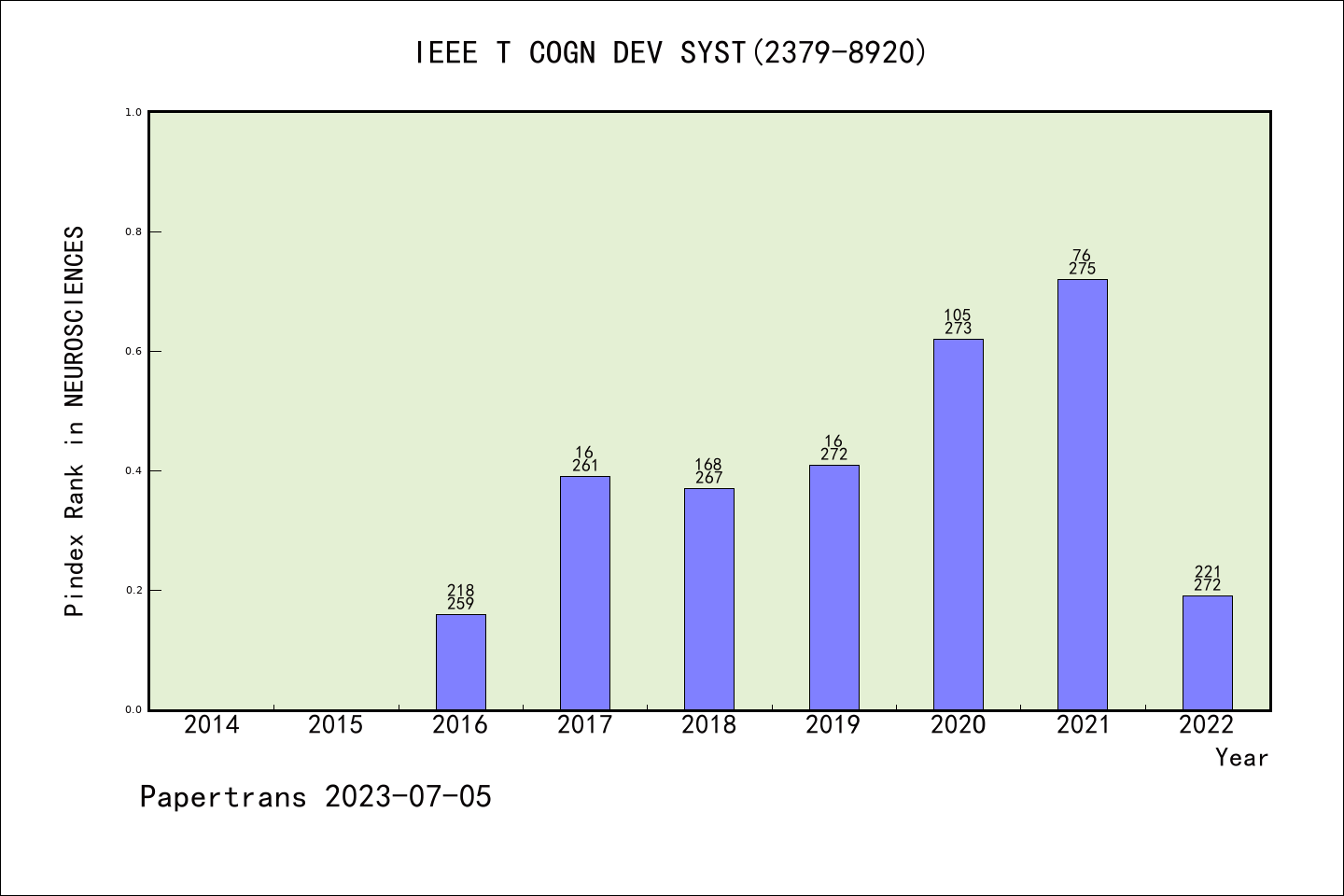 SCIE期刊IEEE Transactions on Cognitive and Developmental Systems历年派博系数(Pindex)