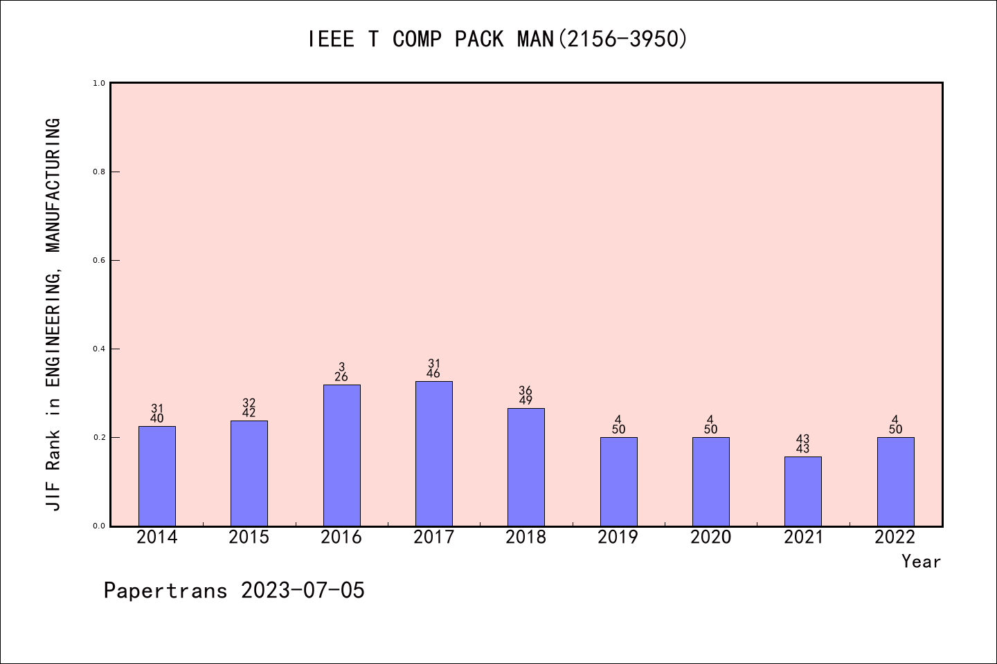 IEEE Transactions on Components Packaging and Manufacturing Technology派博系数(Pindex)学科排名@SCIE制造工程