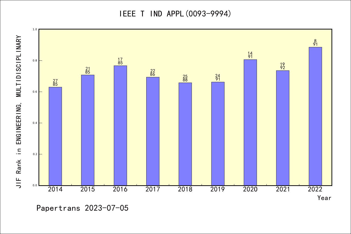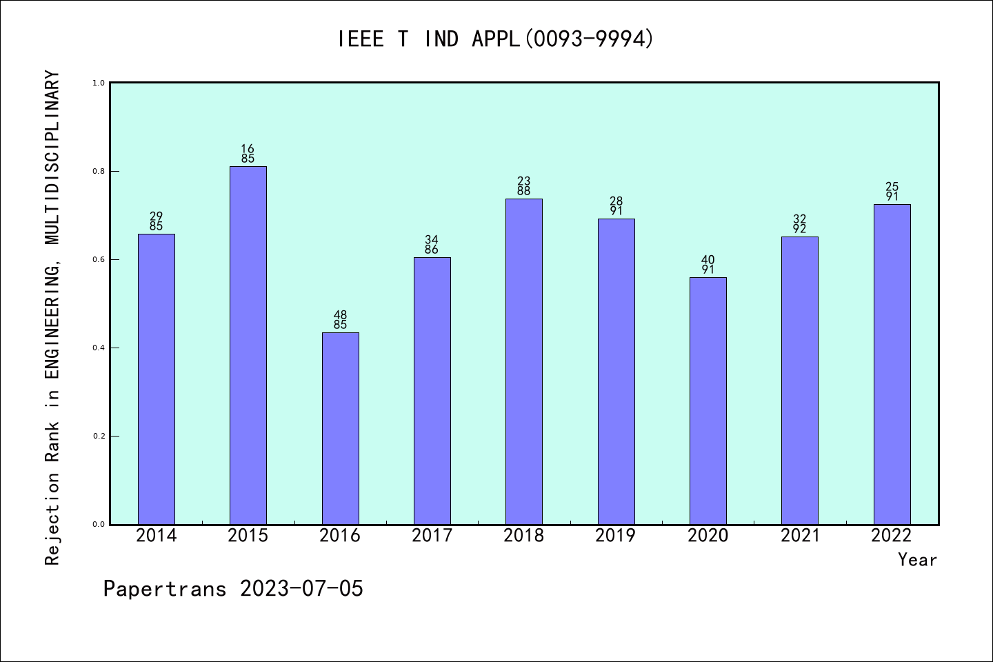 IEEE TRANSACTIONS ON INDUSTRY APPLICATIONS拒稿率学科排名@SCIE工程及交叉学科