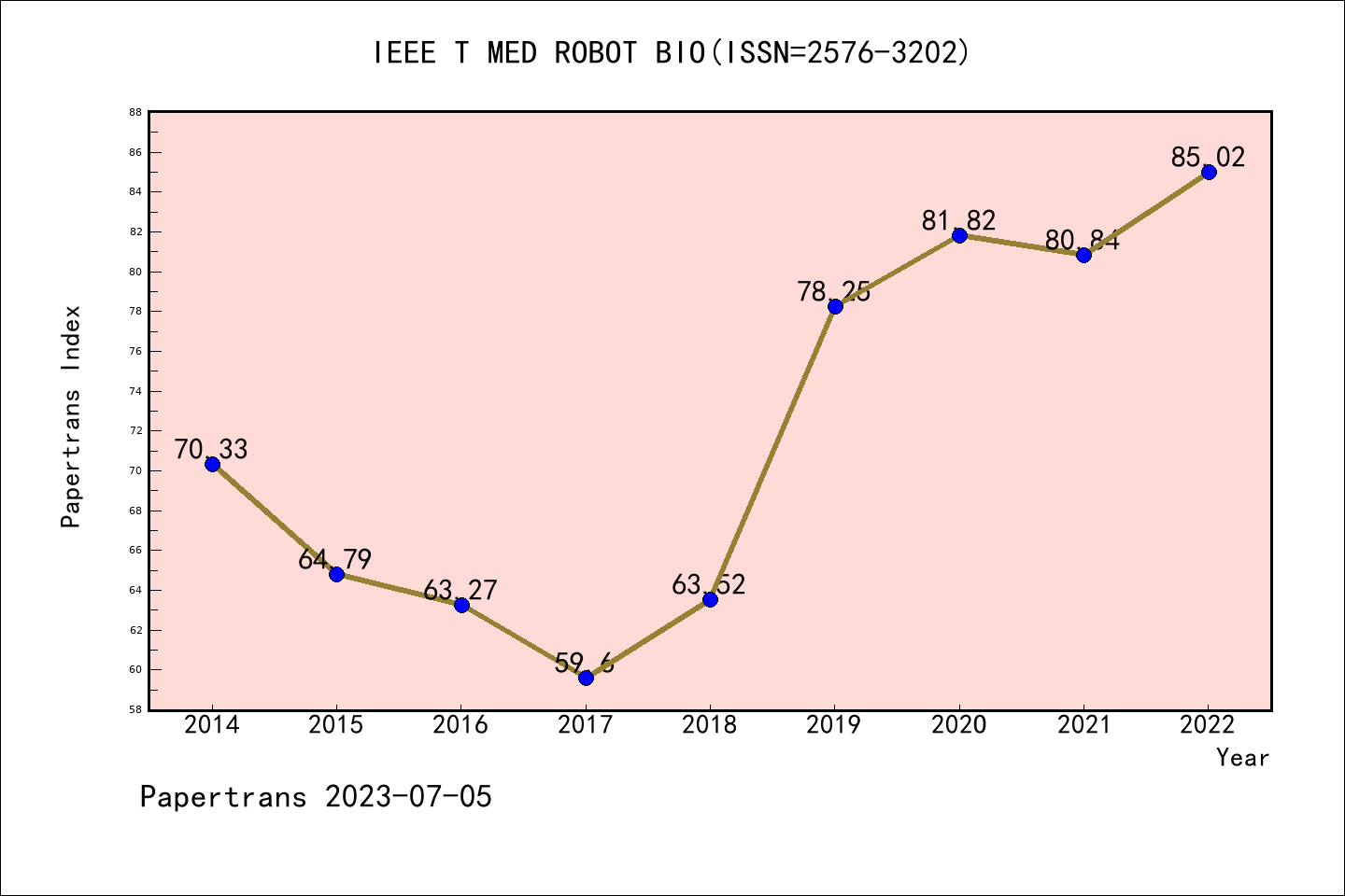 ESCI期刊IEEE Transactions on Medical Robotics and Bionics历年派博系数(Pindex)