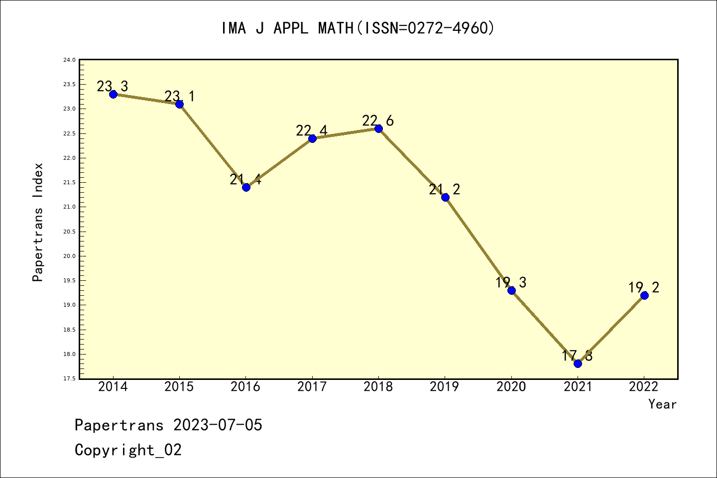 SCIE期刊IMA JOURNAL OF APPLIED MATHEMATICS历年派博系数(Pindex)
