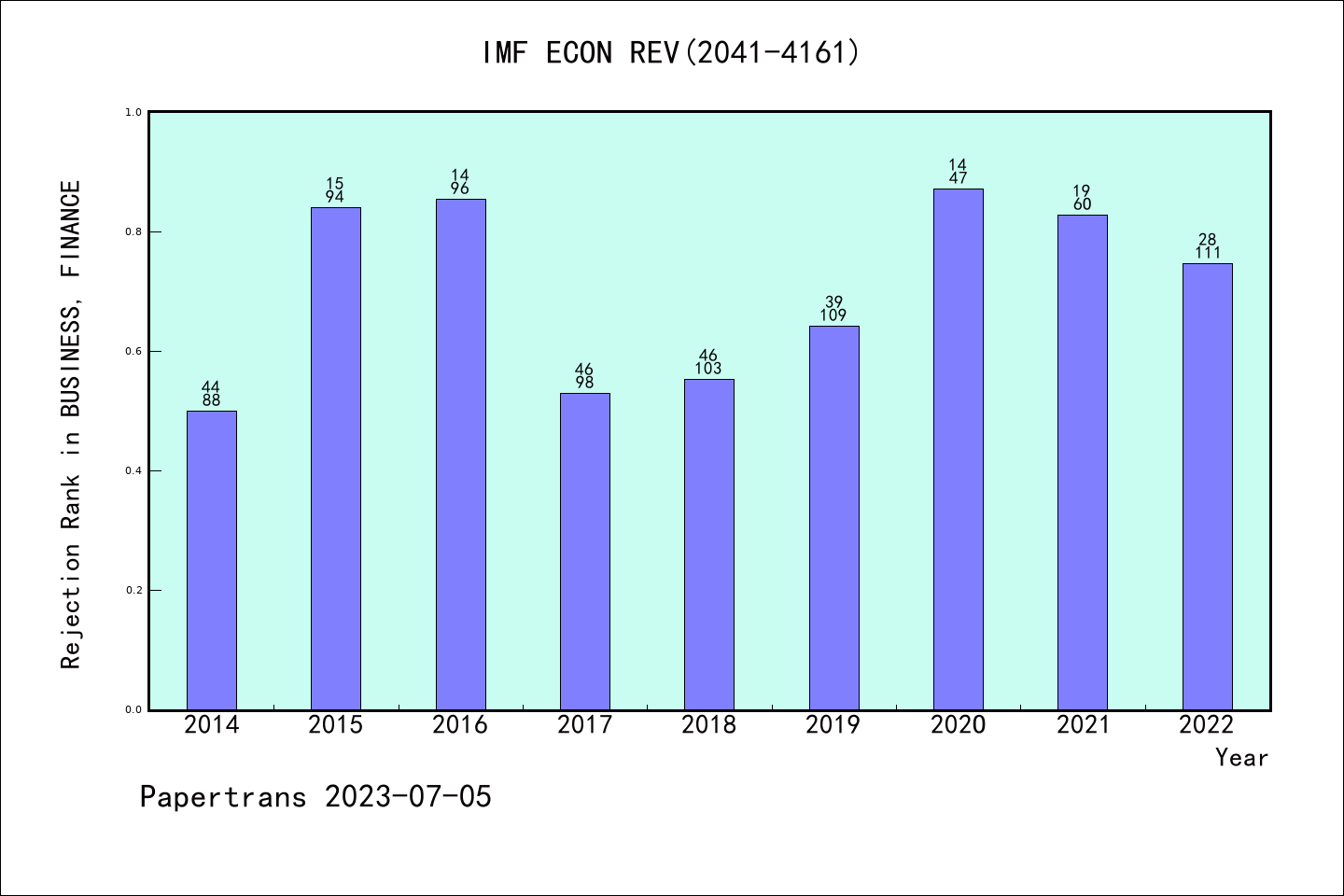 IMF Economic Review拒稿率学科排名@SSCI商业与金融