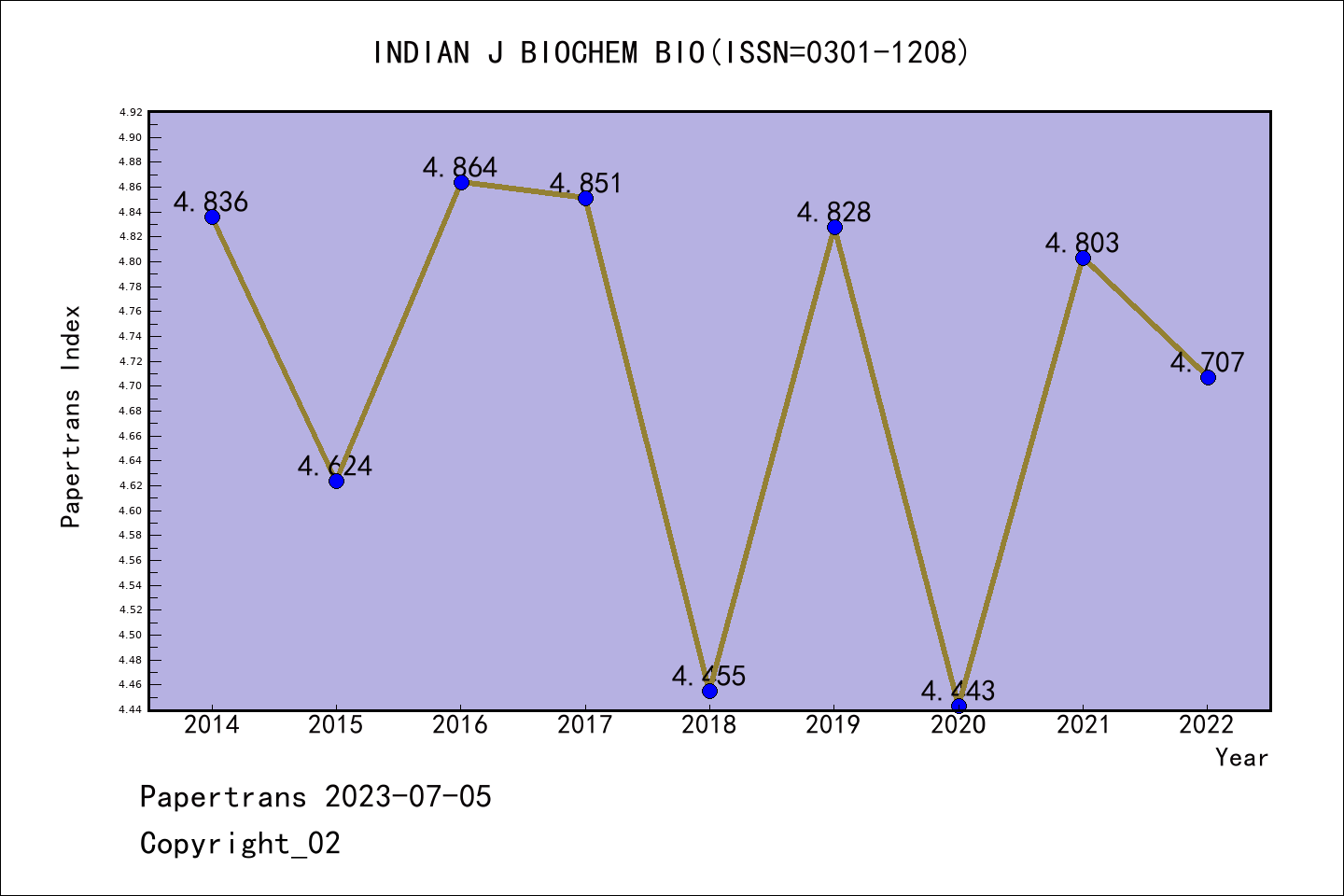 SCIE期刊INDIAN JOURNAL OF BIOCHEMISTRY & BIOPHYSICS历年派博系数(Pindex)