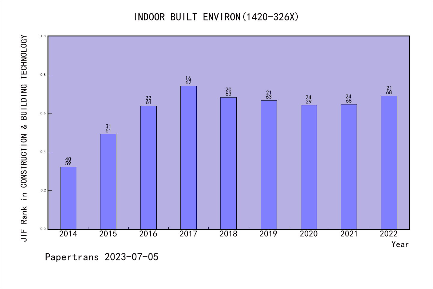 INDOOR AND BUILT ENVIRONMENT派博系数(Pindex)学科排名@SCIE建筑施工技术