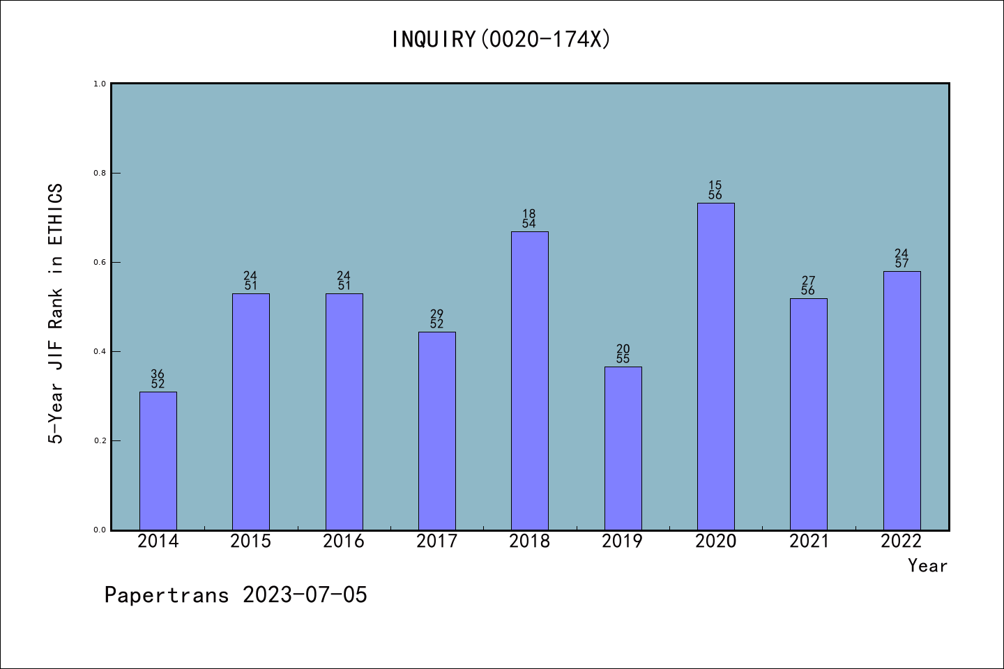 INQUIRY-AN INTERDISCIPLINARY JOURNAL OF PHILOSOPHY拒稿率学科排名@SSCI伦理学