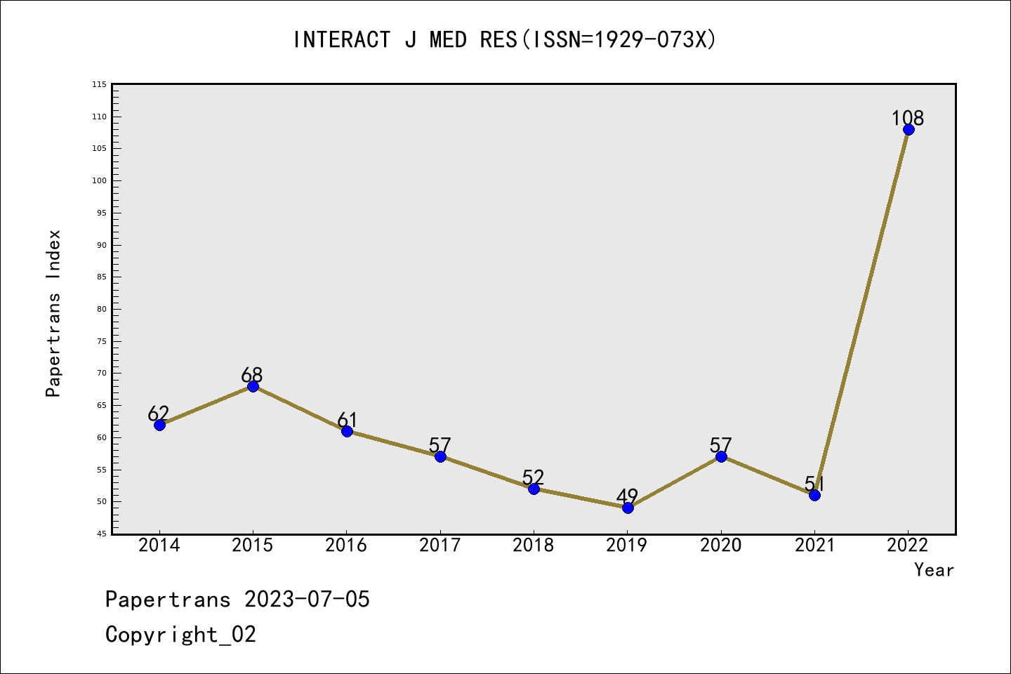 派博 系数 | ESCI期刊Interactive Journal of Medical Research历年派博系数(Pindex)