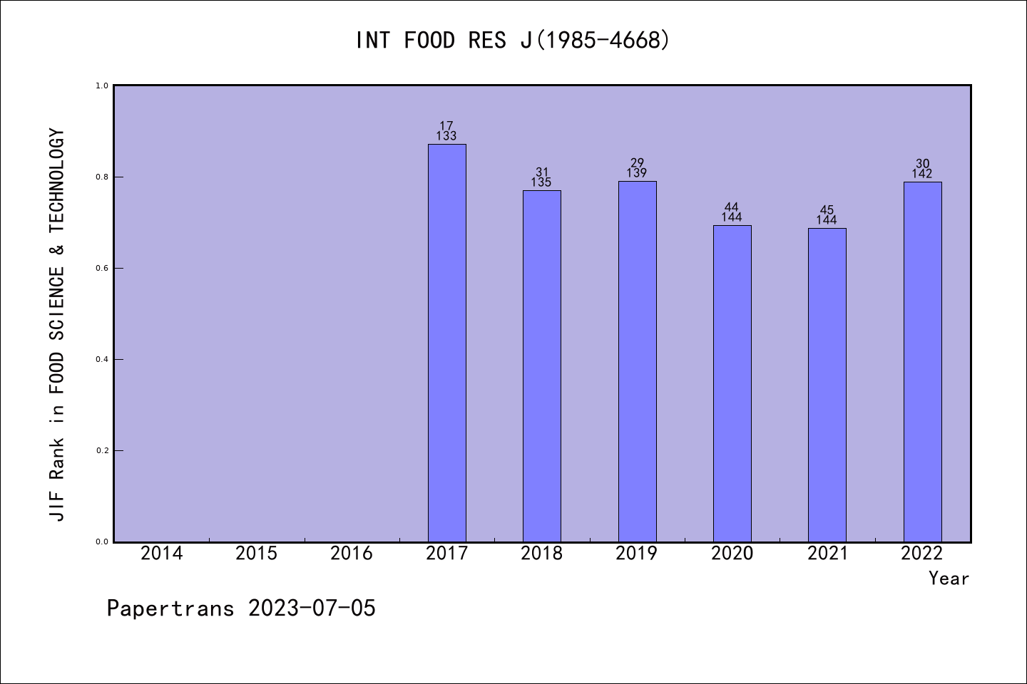 INT FOOD RES J图表质量排名@SCIE食品科技
