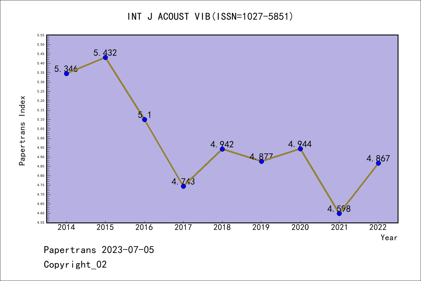 SCIE期刊International Journal of Acoustics and Vibration历年派博系数(Pindex)