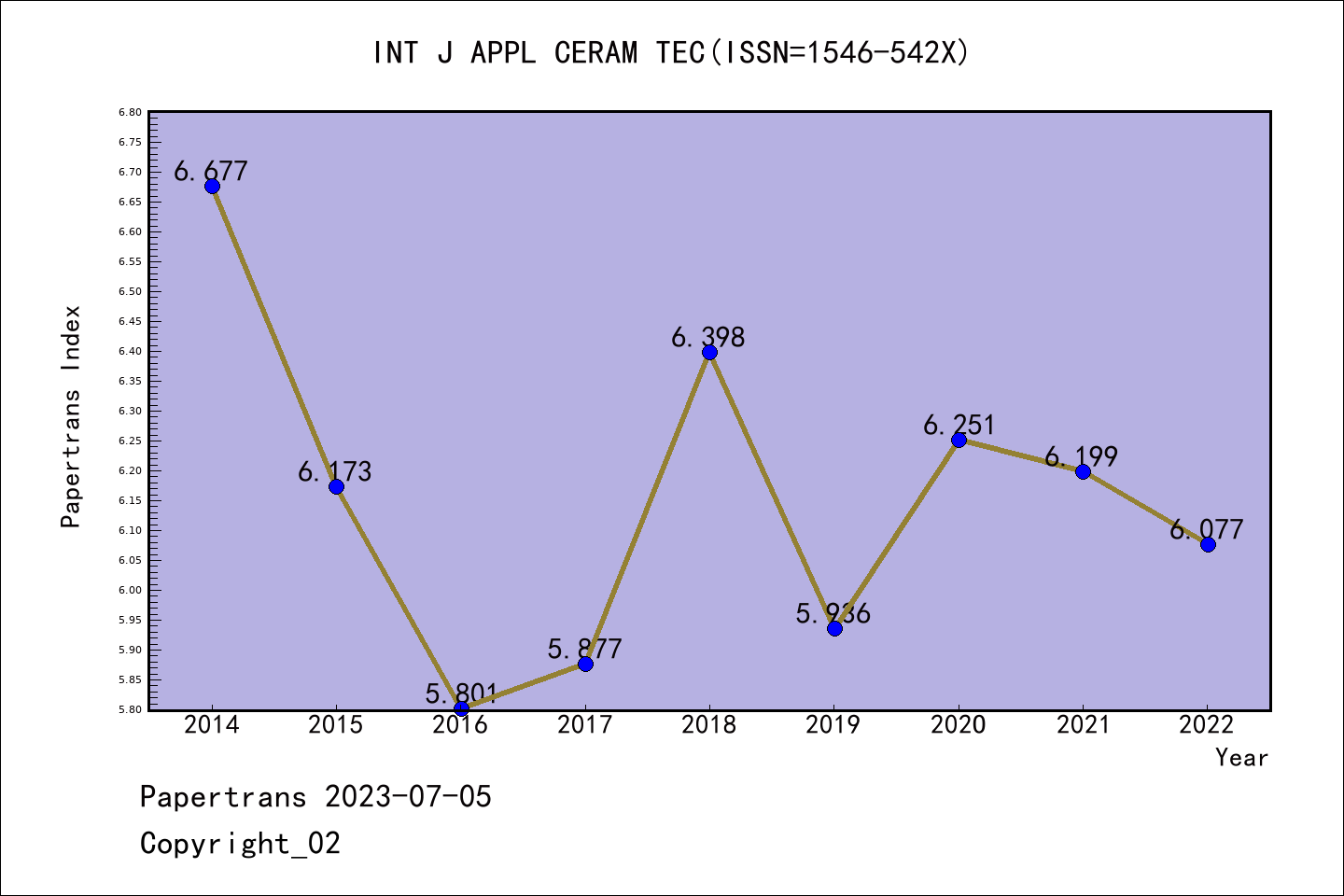 SCIE期刊International Journal of Applied Ceramic Technology历年派博系数(Pindex)