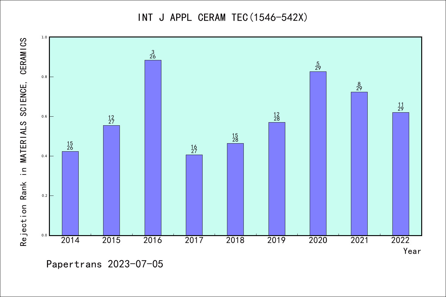 International Journal of Applied Ceramic Technology拒稿率学科排名@SCIE材料科学-陶瓷